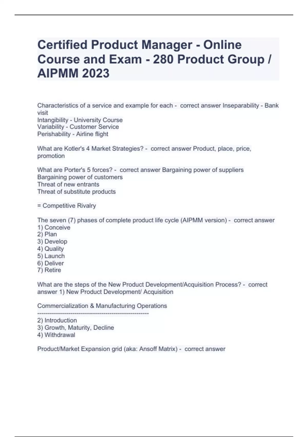 Certified Product Manager - Online Course and Exam - 280 Product Group AIPMM 2024
