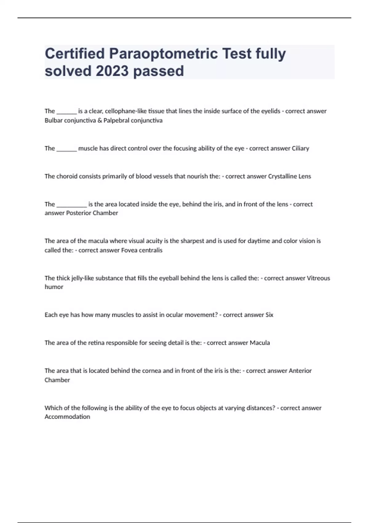 Certified Paraoptometric Test fully solved 2024 passed