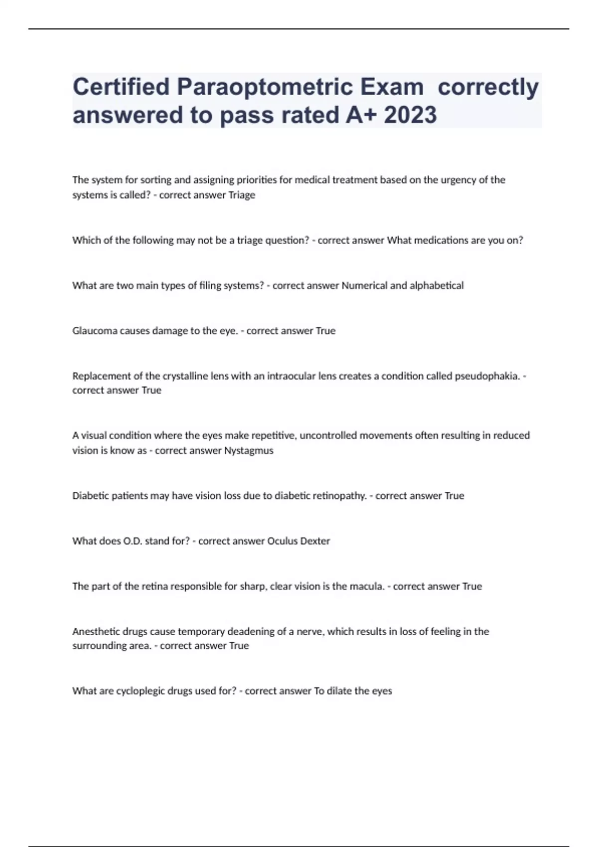 Certified Paraoptometric Exam correctly answered to pass rated A+ 2024