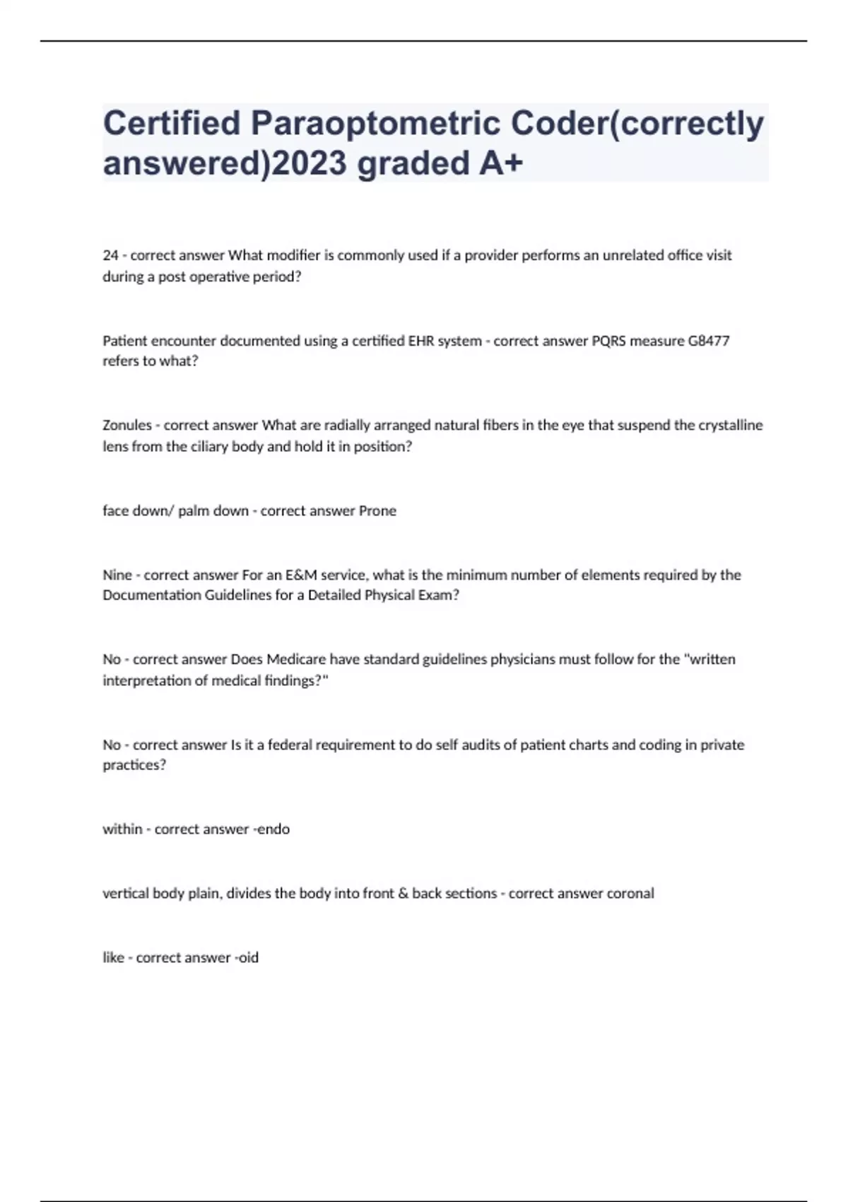 Certified Paraoptometric Coder(correctly answered)2024 graded A+