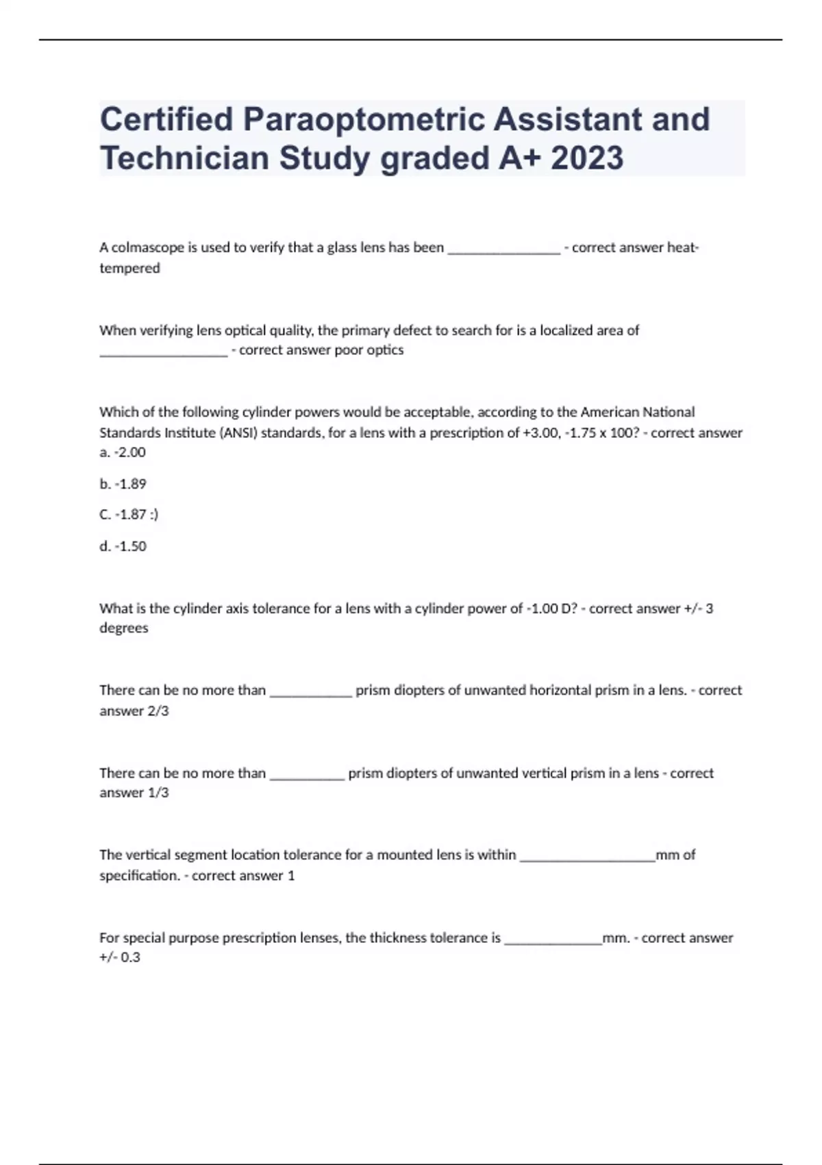 Certified Paraoptometric Assistant and Technician Study graded A+ 2024