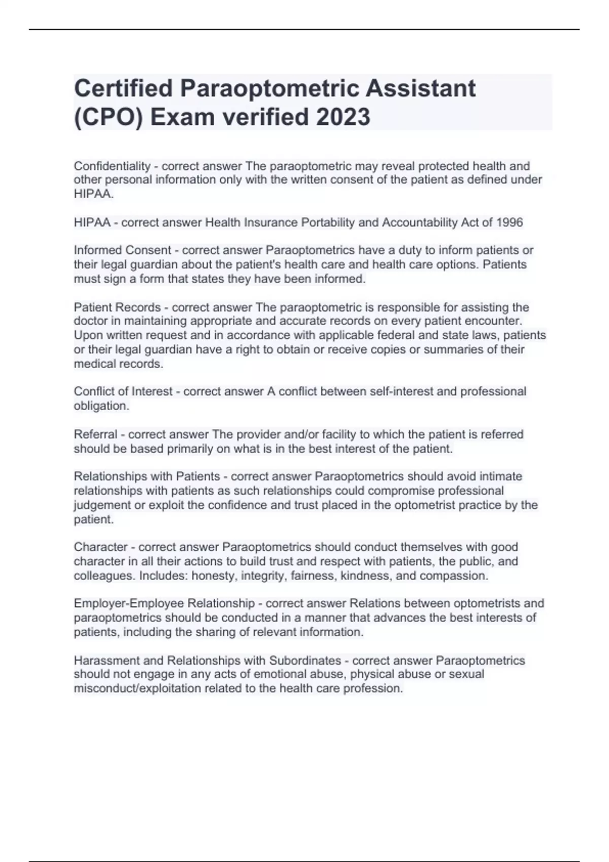 Certified Paraoptometric Assistant (CPO) Exam verified 2024