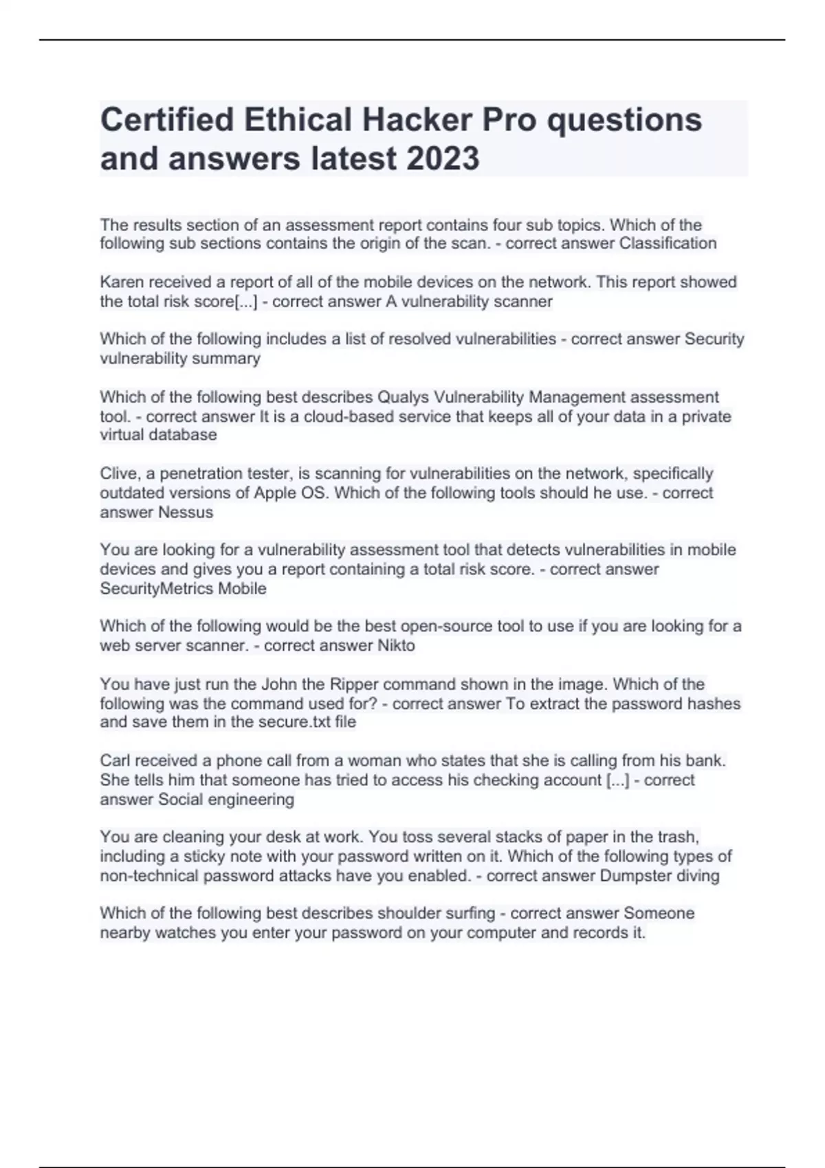 certified ethical hacker pro questions and answers