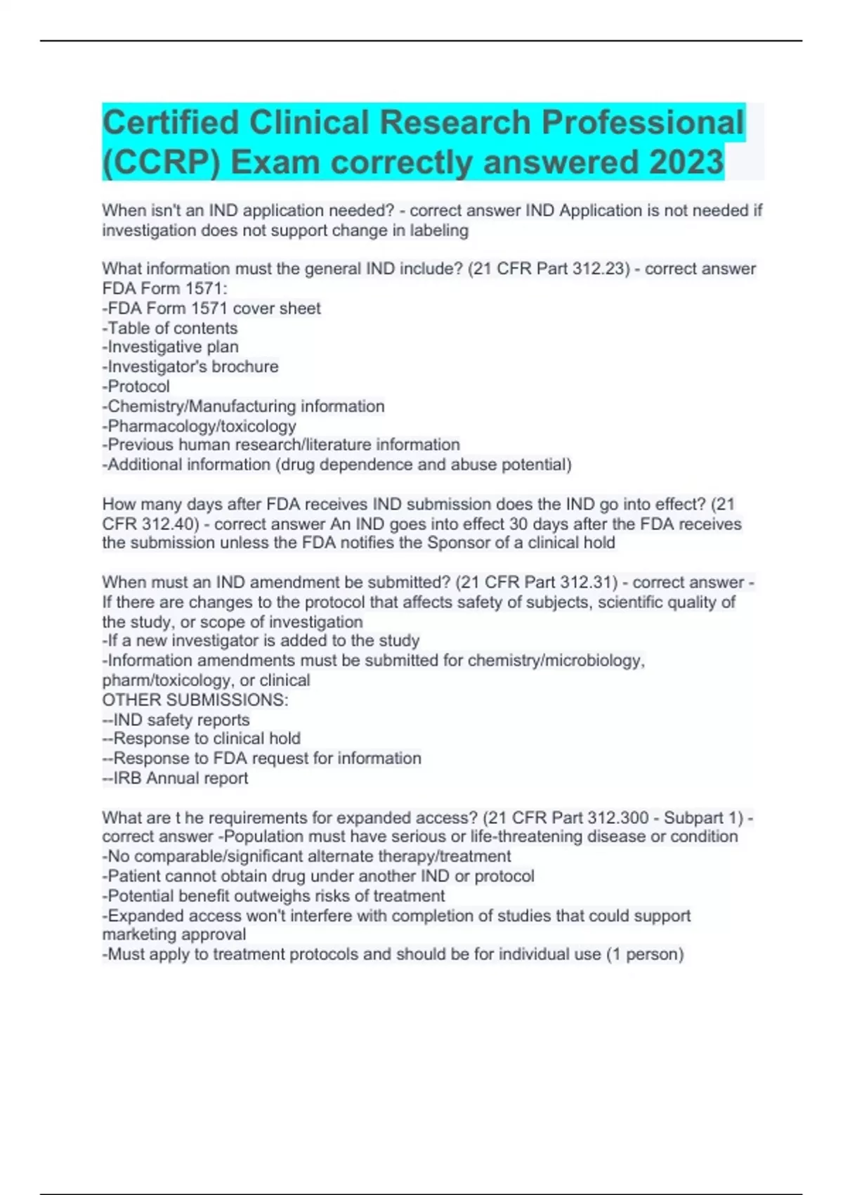 Certified Clinical Research Professional questions with completed solutions 2024
