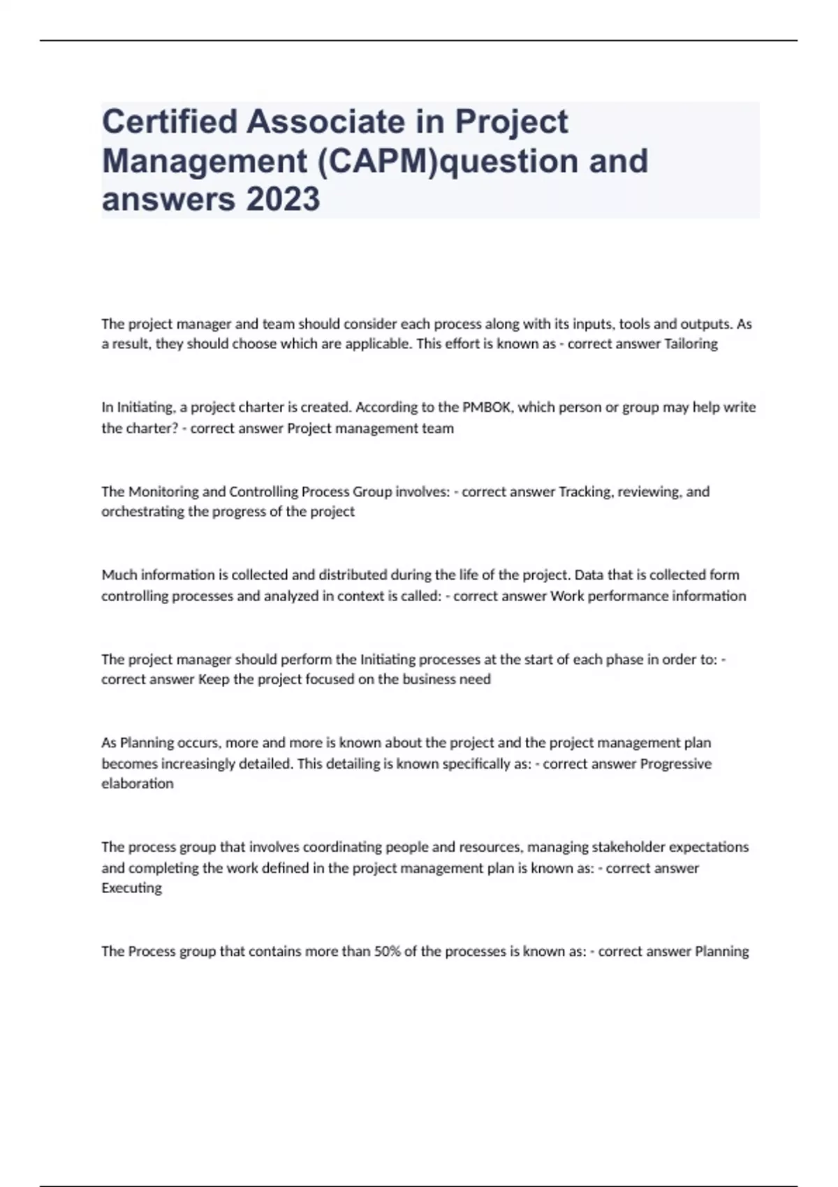 Certified Associate in Project Management questions and answers already solved 2024