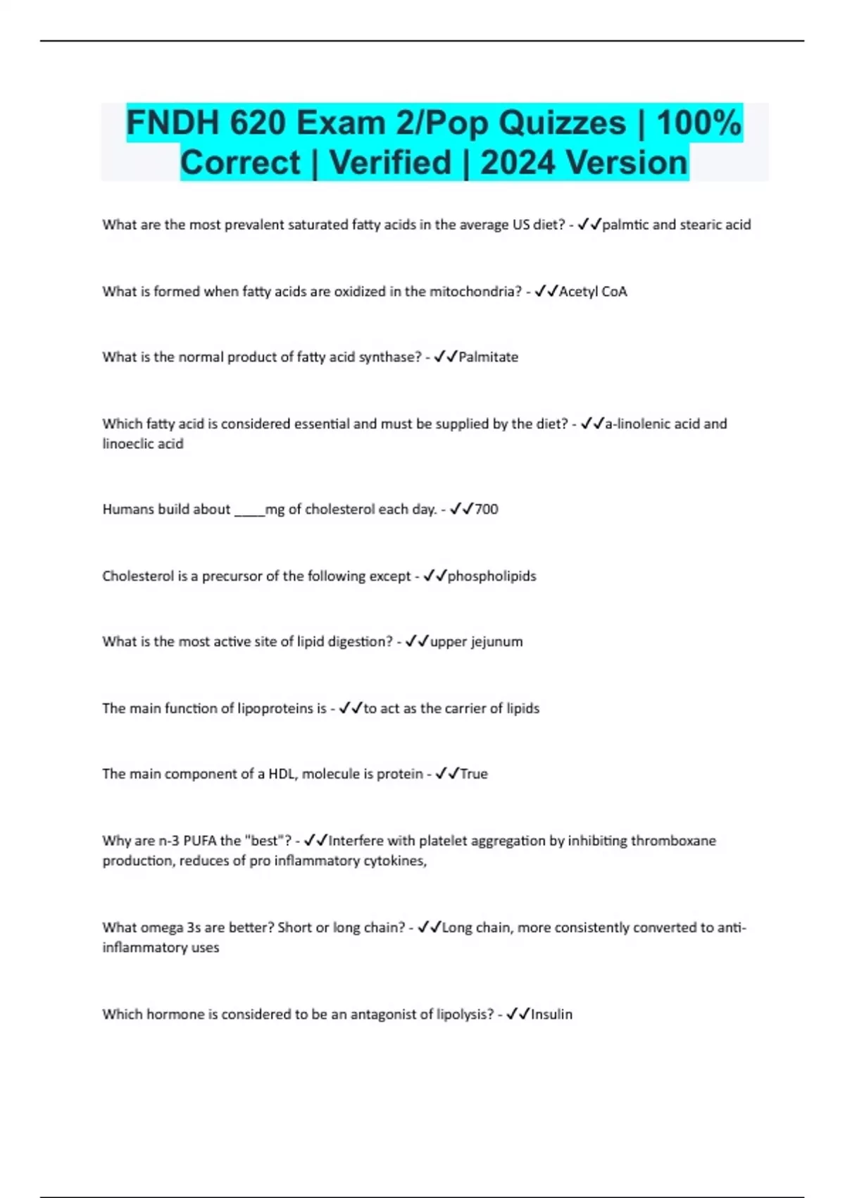 FNDH 620 Exam 2/Pop Quizzes | 100% Correct | Verified | 2024 Version