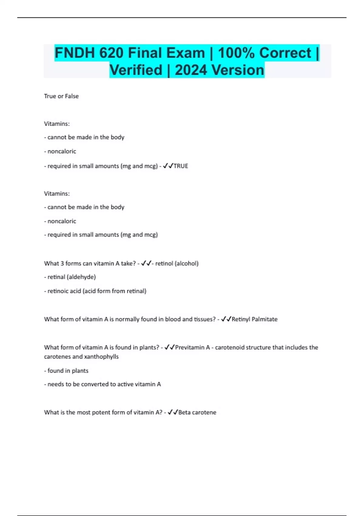 FNDH 620 Final Exam | 100% Correct | Verified | 2024 Version