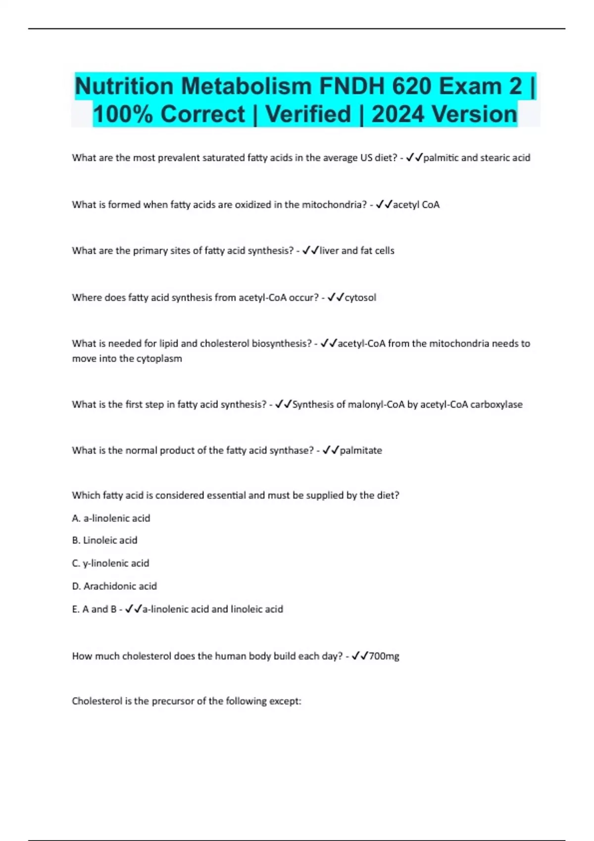Nutrition Metabolism FNDH 620 Exam 2 | 100% Correct | Verified | 2024 Version