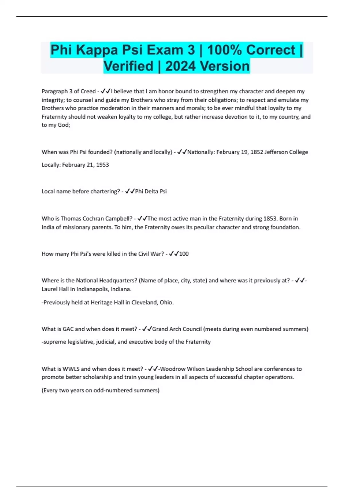 Phi Kappa Psi Exam 3 | 100% Correct | Verified | 2024 Version