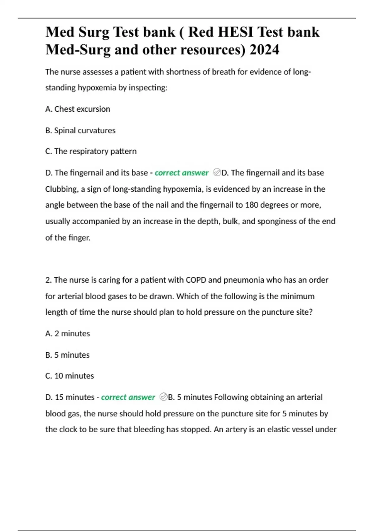Med Surg Test bank ( Red HESI Test bank Med-Surg and other resources) 2024