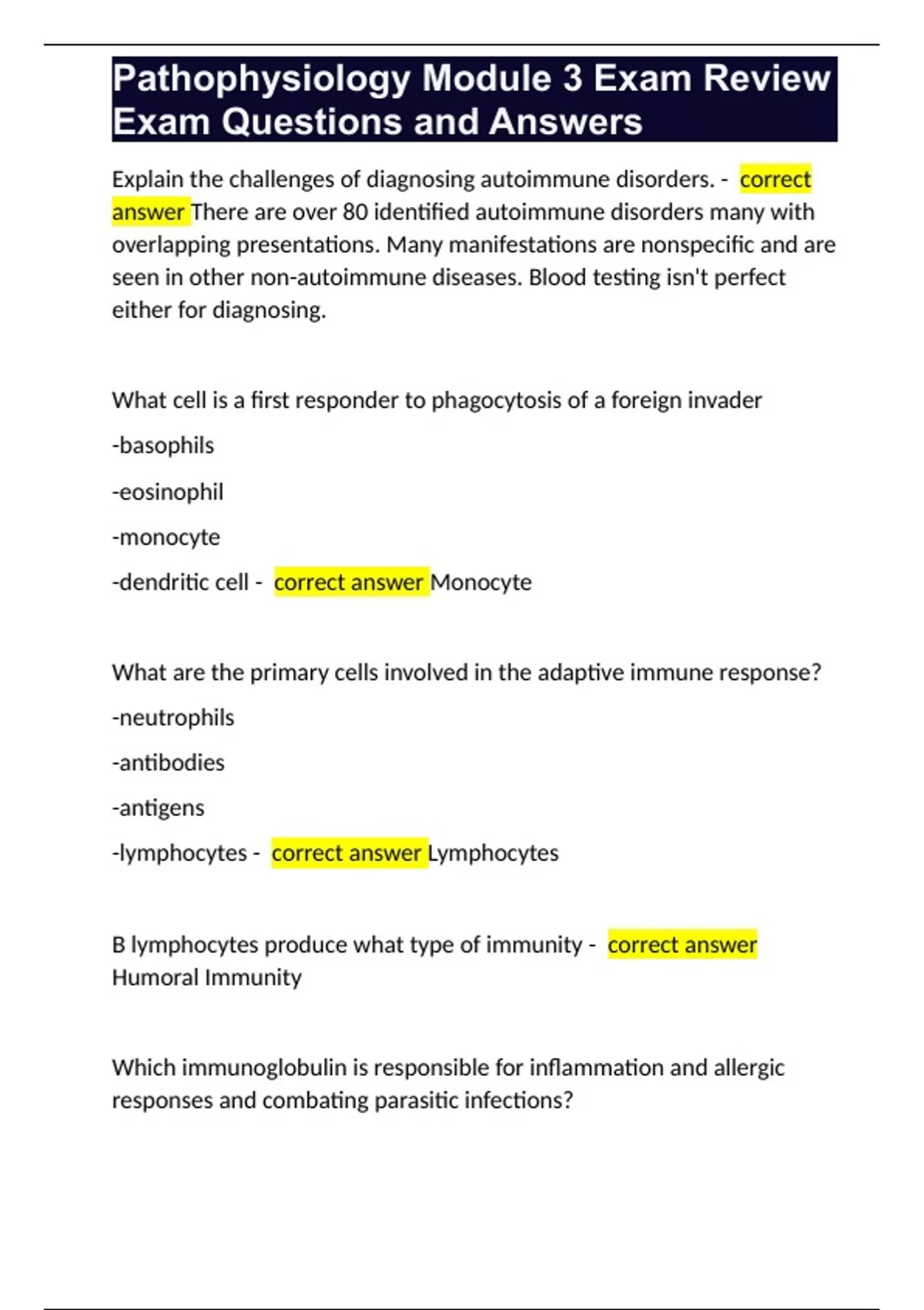 Pathophysiology Module 3 Exam Review Exam Questions and Answers