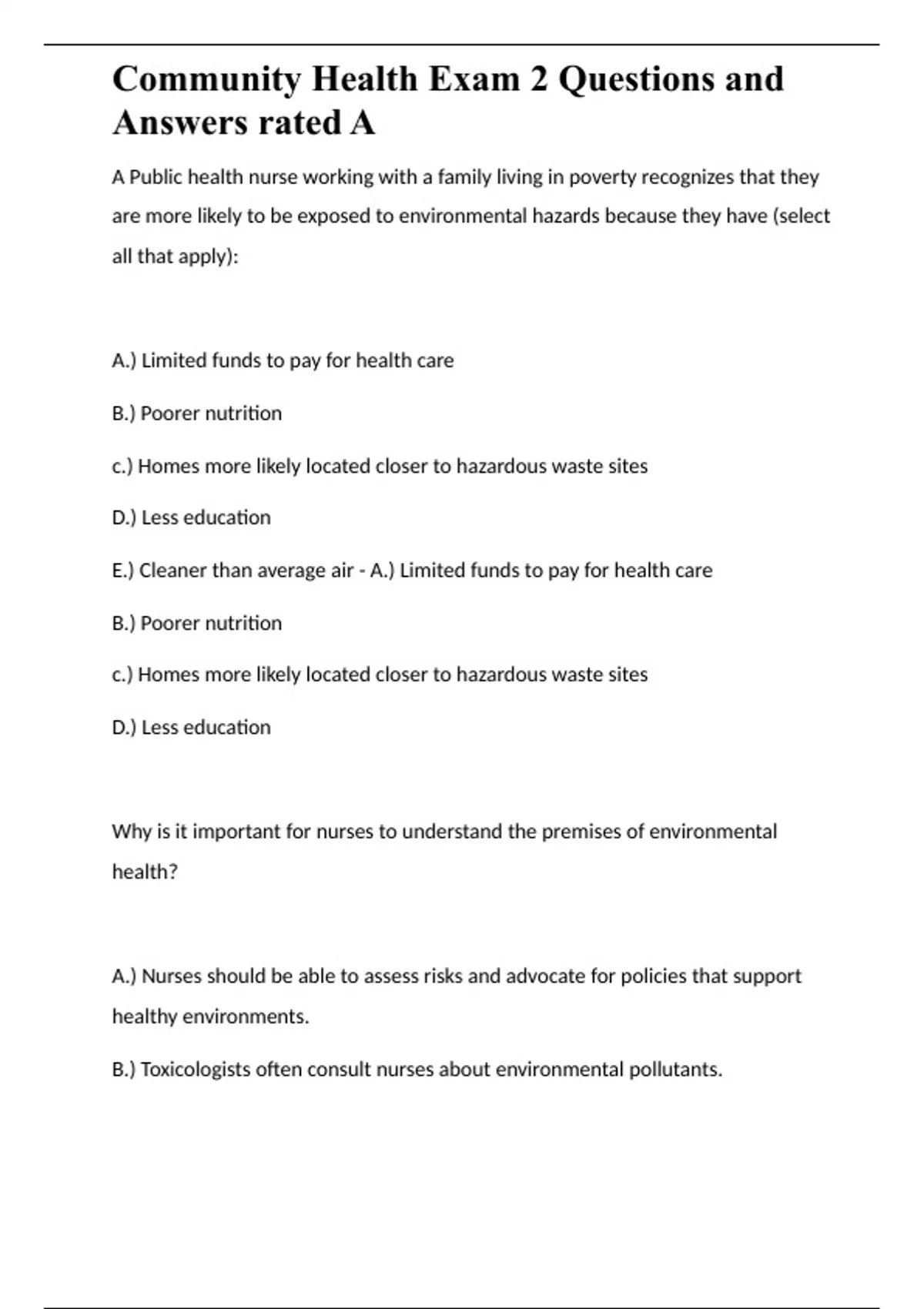 Community Health Nursing NCLEX Questions 2 questions and answers latest 2024