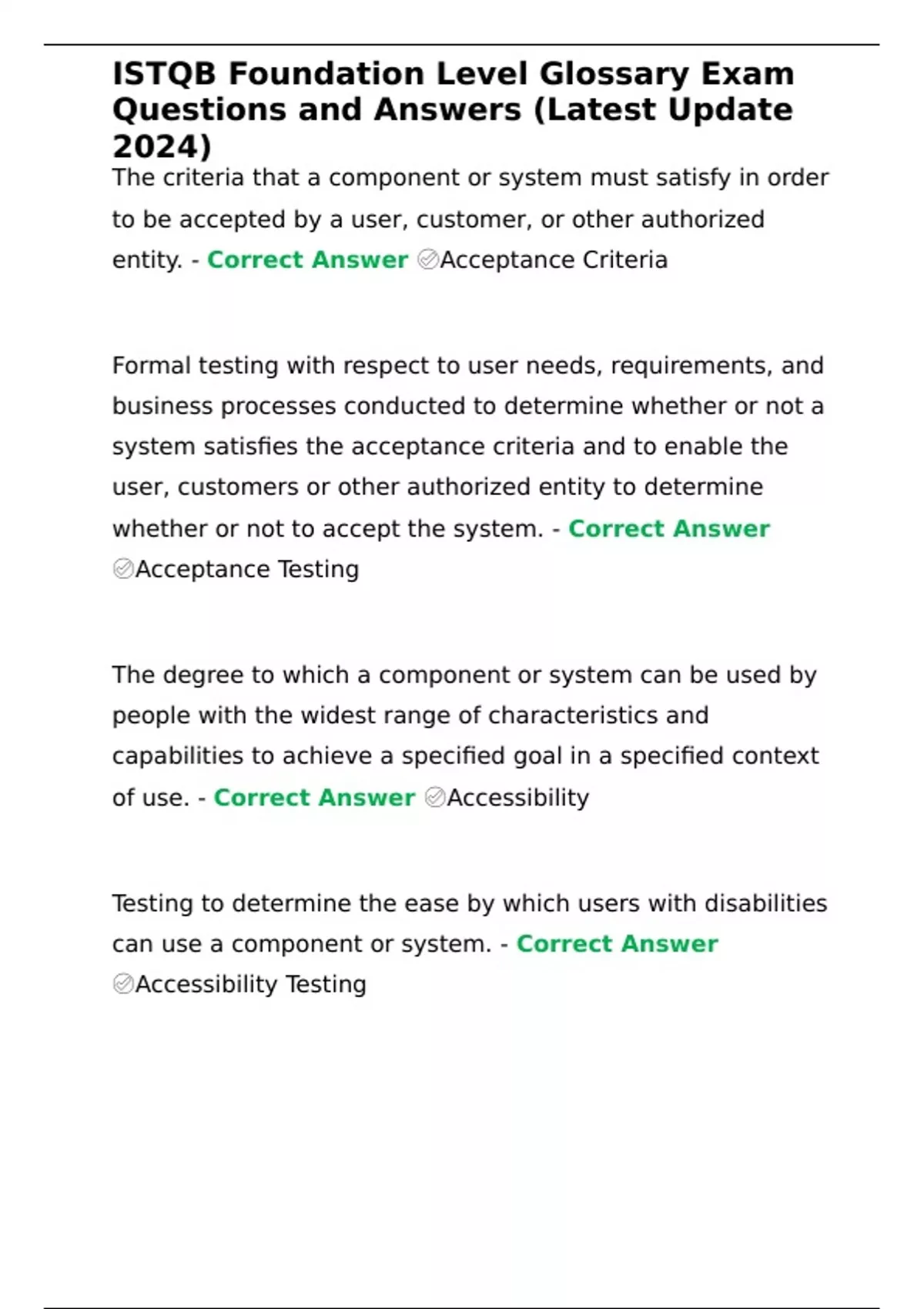 ISTQB Foundation Level Glossary Exam Questions and Answers (Latest Update 2024)