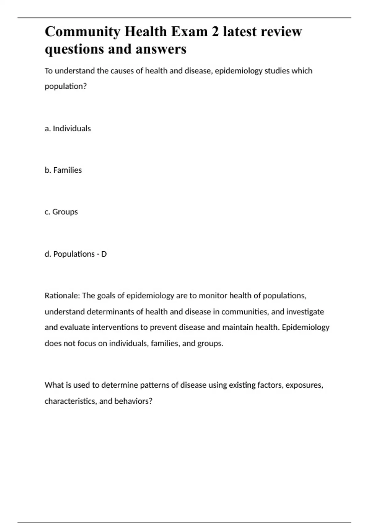 Community Health Nursing NCLEX Questions 2 questions and answers latest 2024