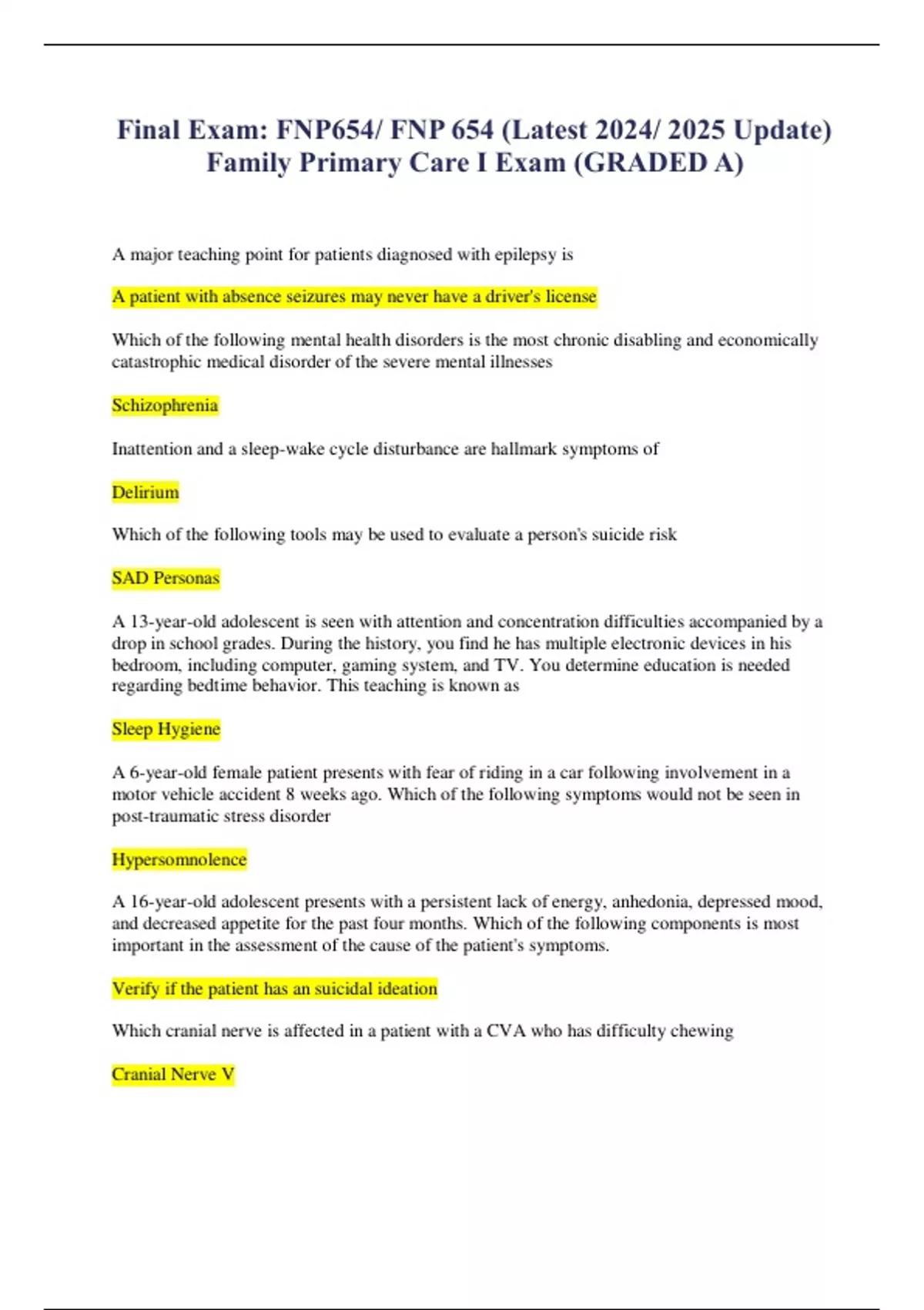 Final Exam: FNP654/ FNP 654 (Latest 2024/ 2025 Update)