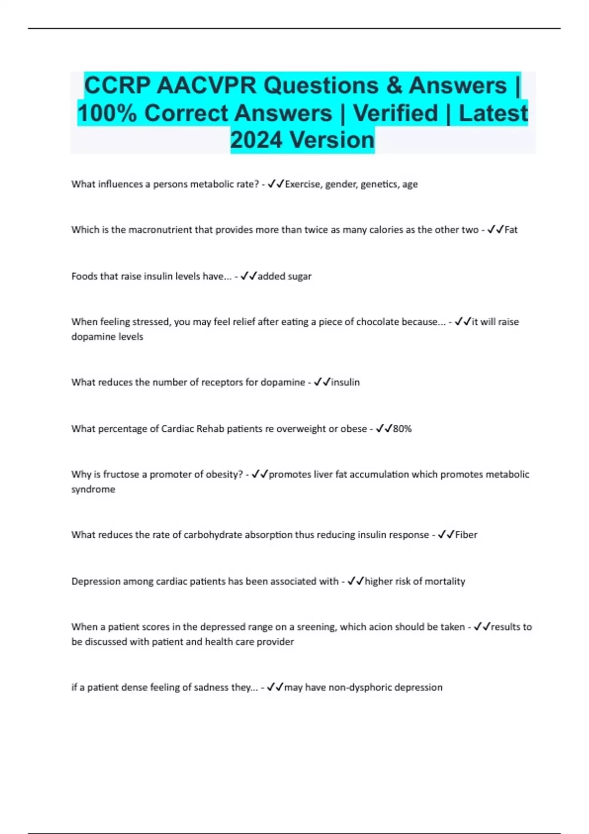 CCRP AACVPR Questions & Answers | 100% Correct Answers | Verified | Latest 2024 Version