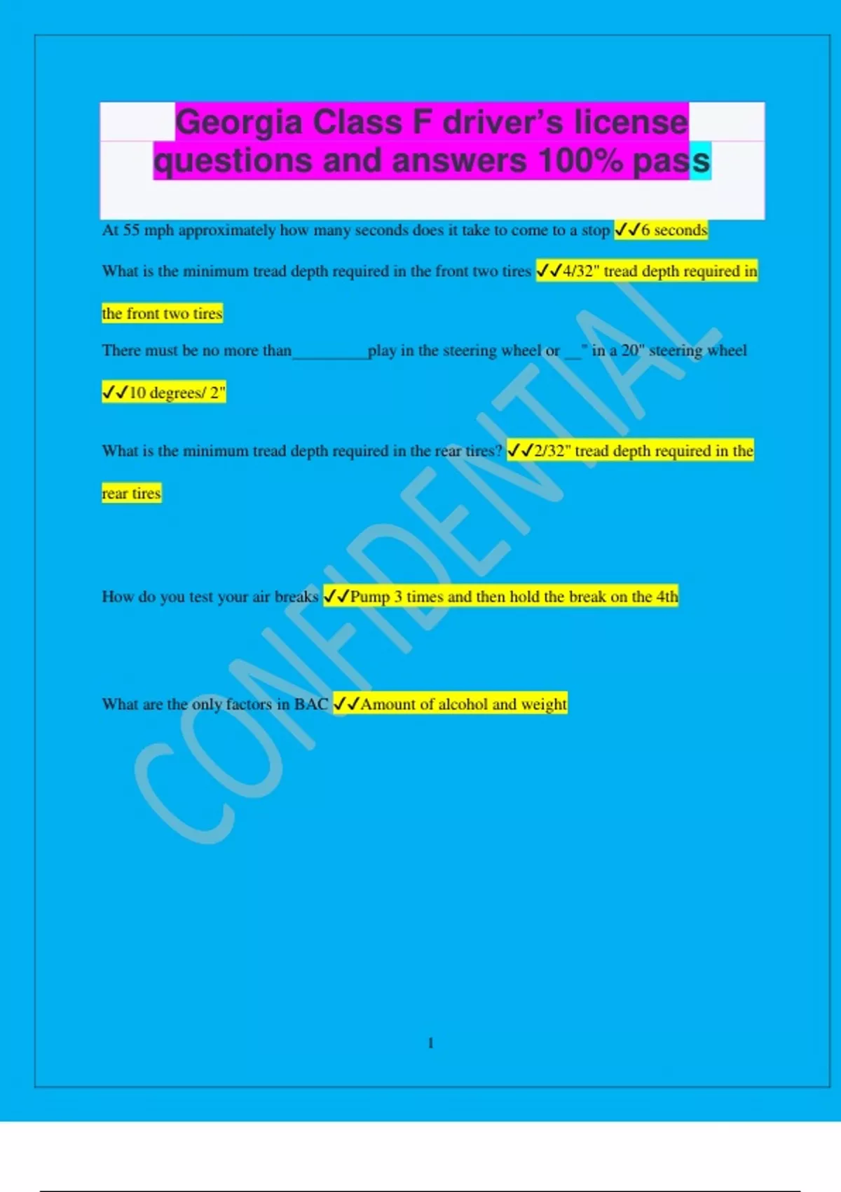 Georgia Class F driver’s license questions and answers 100% pass A+