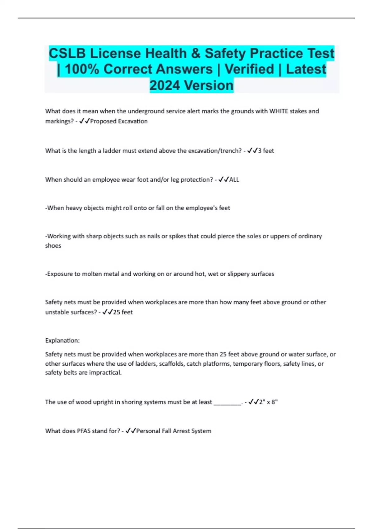 CSLB License Health & Safety Practice Test | 100% Correct Answers | Verified | Latest 2024 Version