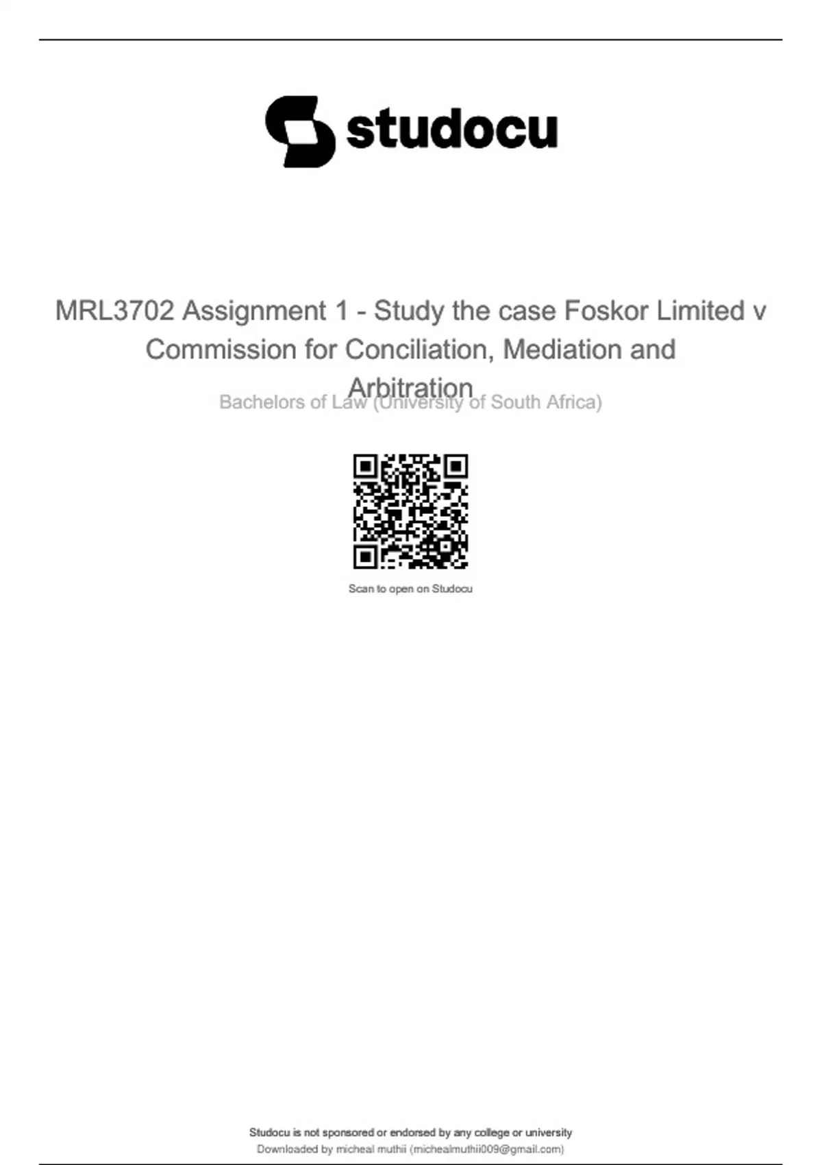MRL3702 Assignment 1 - Study the case Foskor Limited v Commission for Conciliation, Mediation and Arbitration
