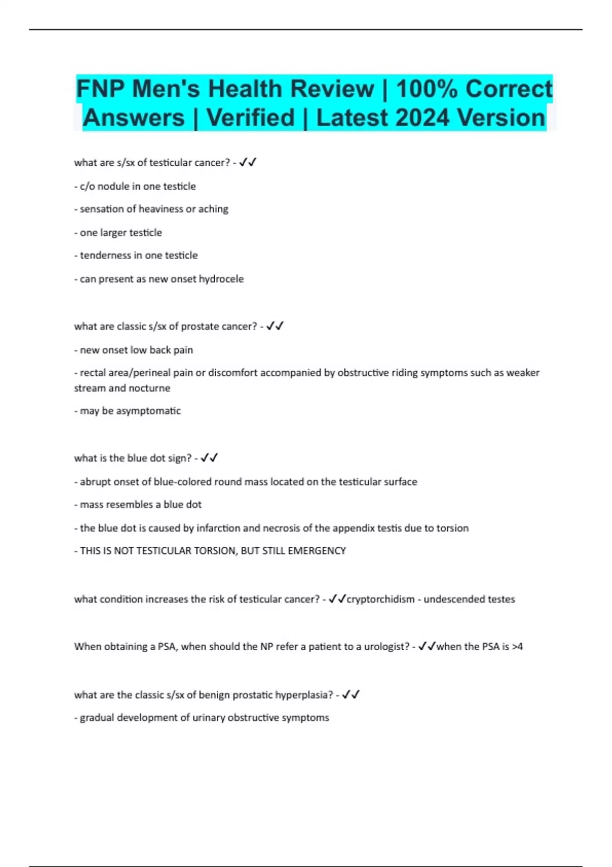 FNP Men's Health Review | 100% Correct Answers | Verified | Latest 2024 Version