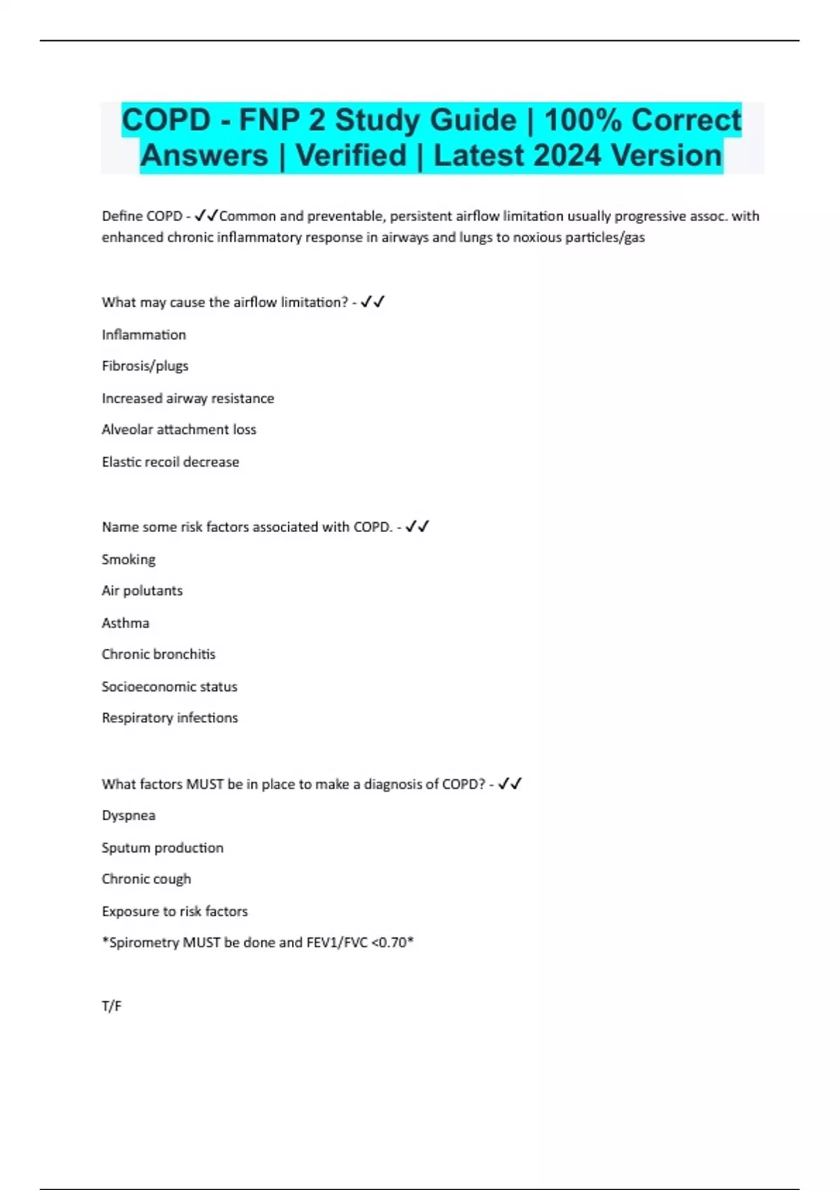 COPD - FNP 2 Study Guide | 100% Correct Answers | Verified | Latest 2024 Version