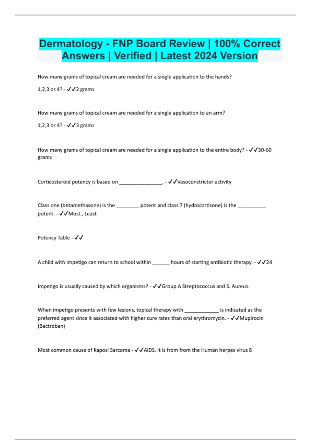 Dermatology - FNP Board Review | 100% Correct Answers | Verified | Latest 2024 Version