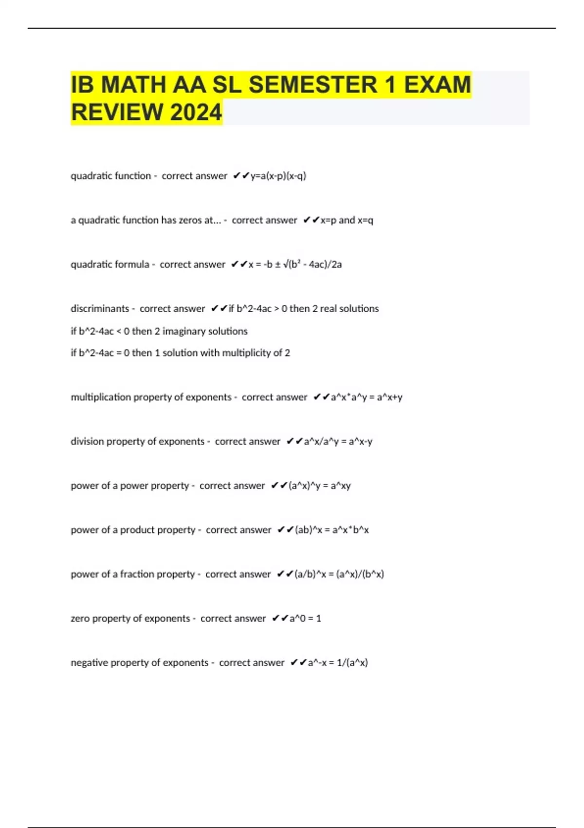 IB MATH AA SL SEMESTER 1 EXAM REVIEW 2024