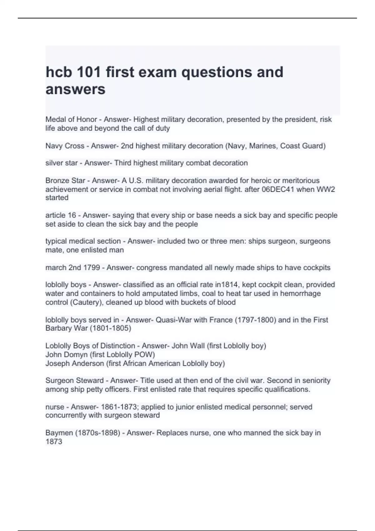 Navy Hospital Corpsman, HCB Exam Bundle (Graded A)