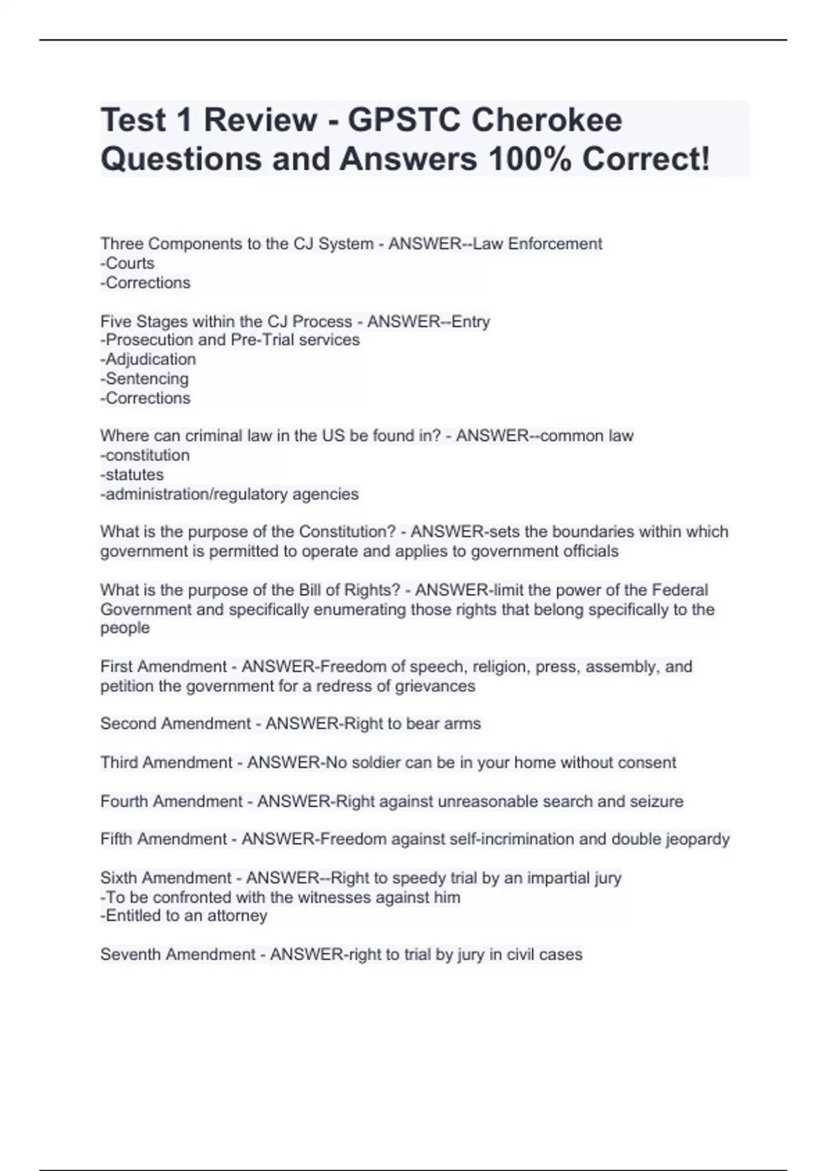 Test 1 Review - GPSTC Cherokee Questions and Answers 100% Correct! Test 1 Review - GPSTC Cherokee Questions and Answers 100% Correct! Test 1 Review - GPSTC Cherokee Questions and Answers 100% Correct! Test 1 Review - GPSTC Cherokee Questions and Answers 100% Correct! Test 1 Review - GPSTC Cherokee Questions and Answers 100% Correct! Test 1 Review - GPSTC Cherokee Questions and Answers 100% Correct!