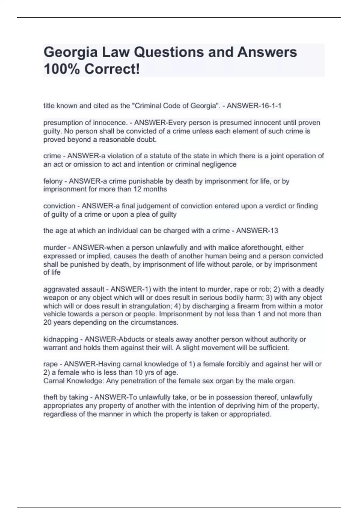 Georgia Law Questions and Answers 100% Correct!Georgia Law Questions and Answers 100% Correct!Georgia Law Questions and Answers 100% Correct!Georgia Law Questions and Answers 100% Correct!Georgia Law Questions and Answers 100% Correct!Georgia Law Questions and Answers 100% Correct!Georgia Law Questions and Answers 100% Correct!