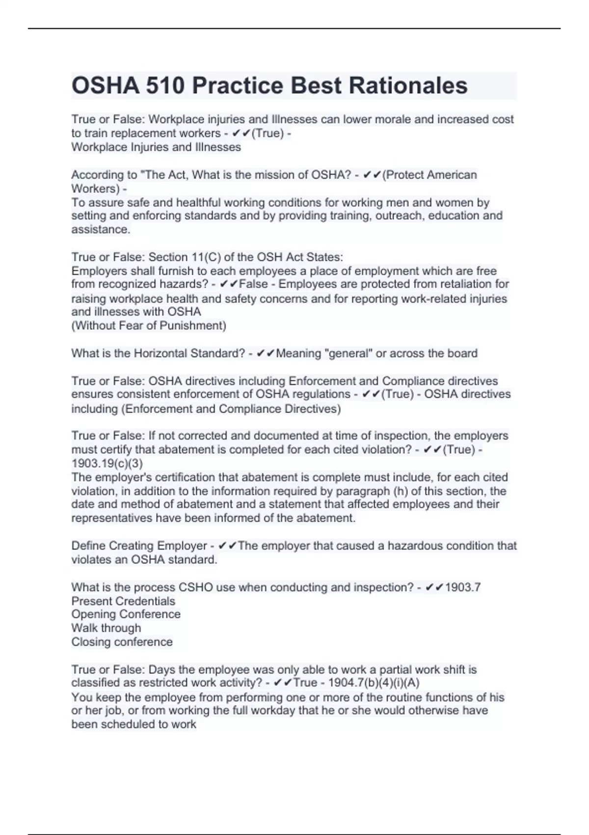 ensures consistent enforcement of OSHA regulations - ✔✔(True) - OSHA directives