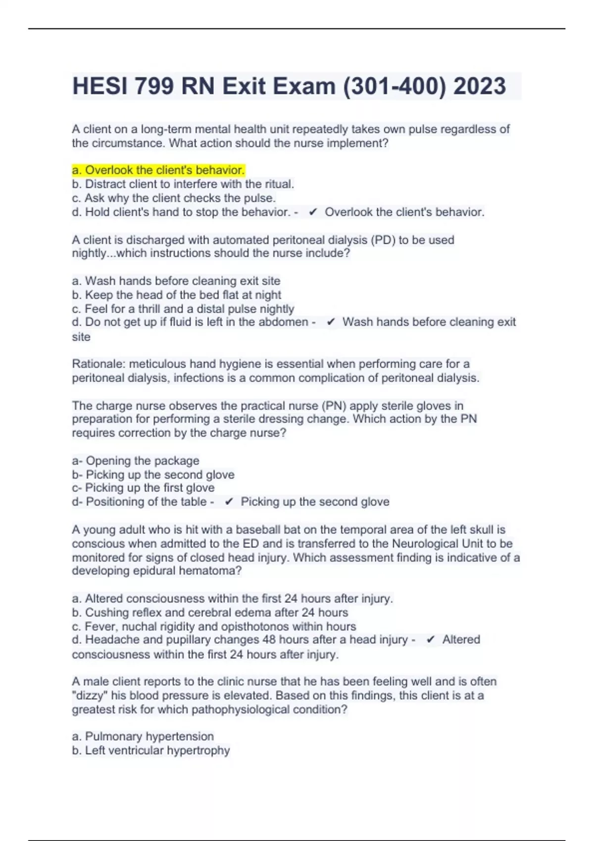 HESI 799 RN Exit Exam (301-400) 2023