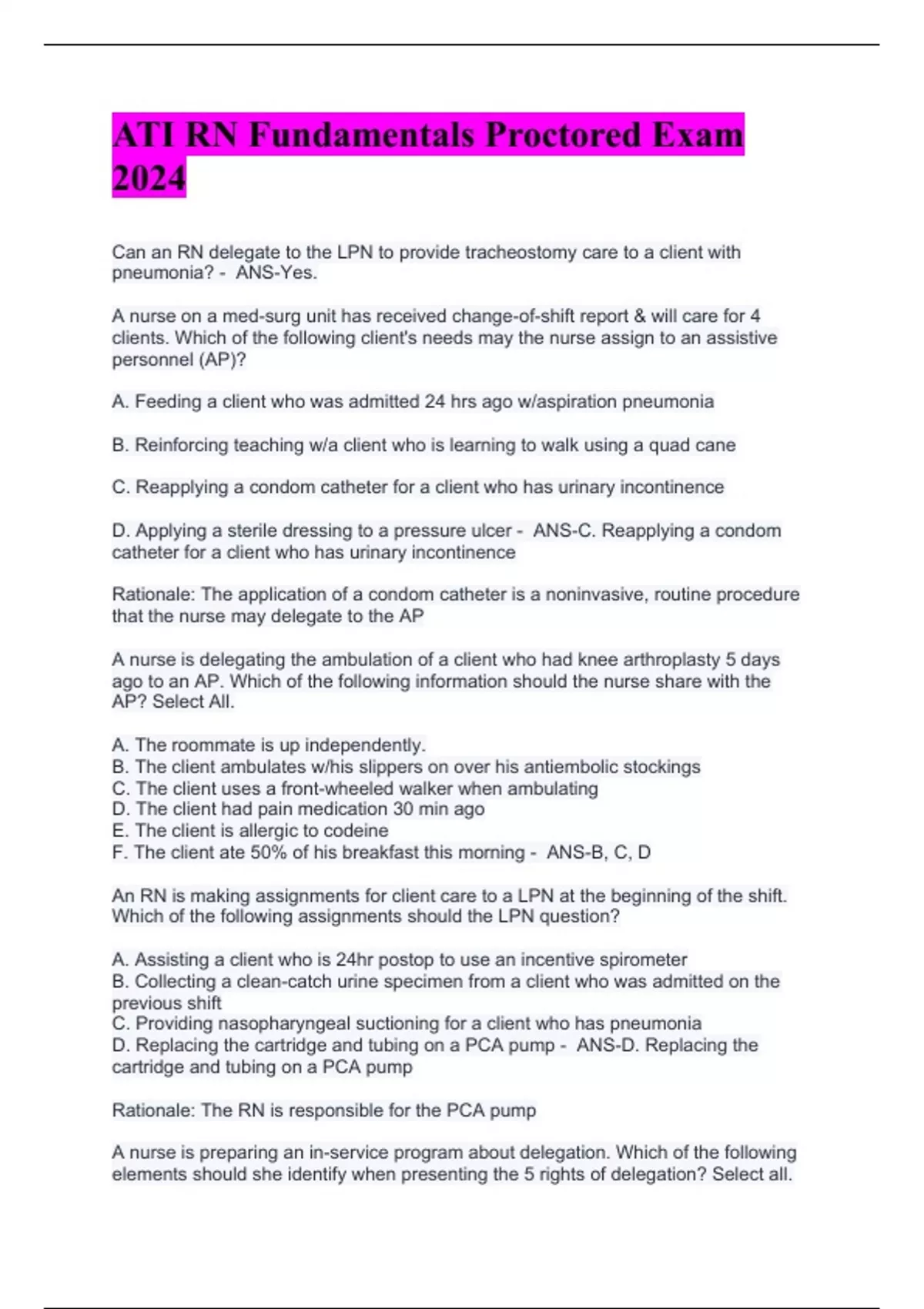 ATI RN Fundamentals Proctored Exam