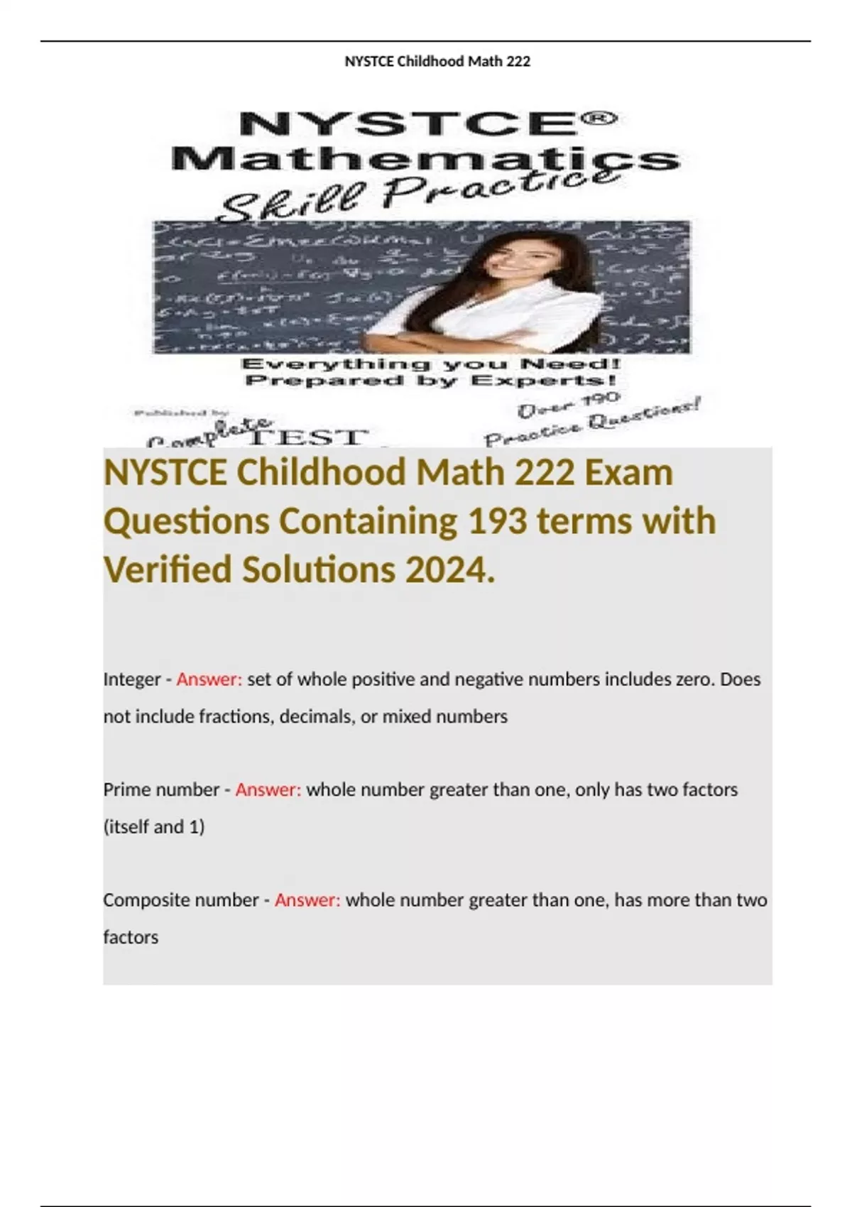 - NYSTCE Childhood Math 222 Exm Qustions Containin
