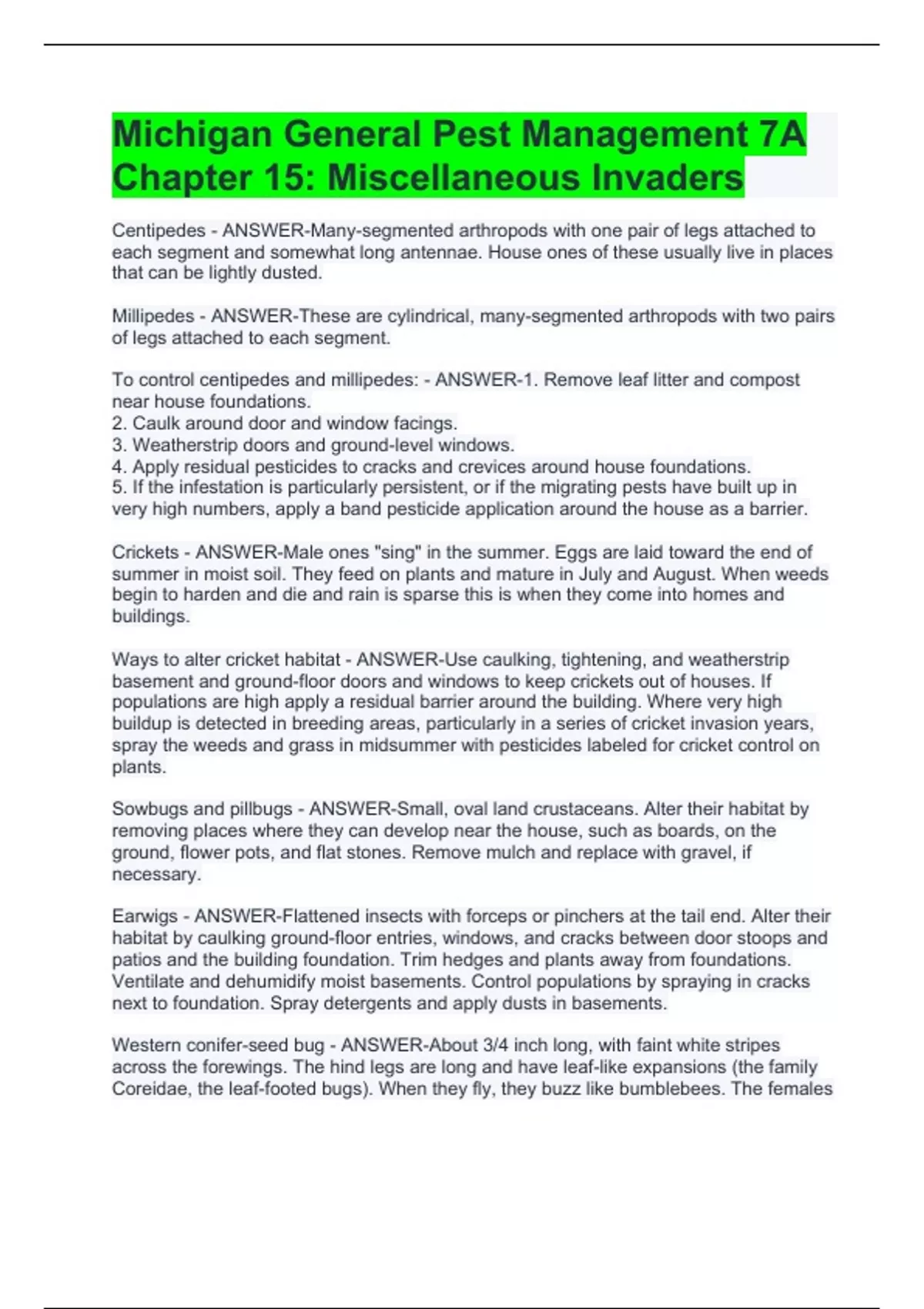 Michigan General Pest Management 7A Chapter 15: Miscellaneous Invaders