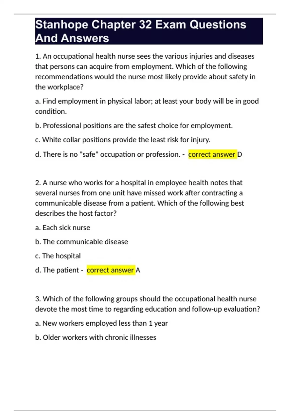 stanhope chapter 32 exam questions and answers