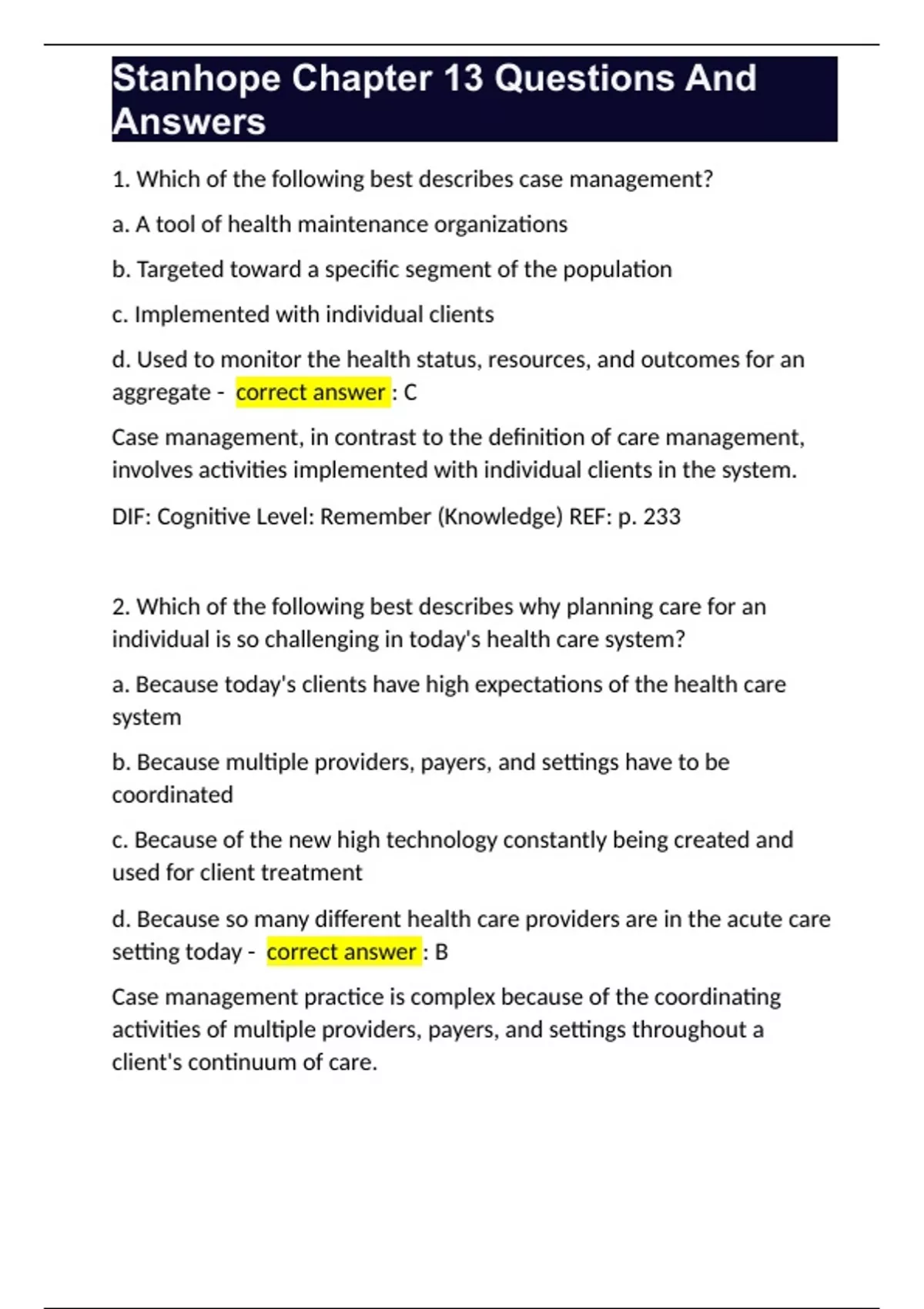 Stanhope Chapter 13 Questions And Answers