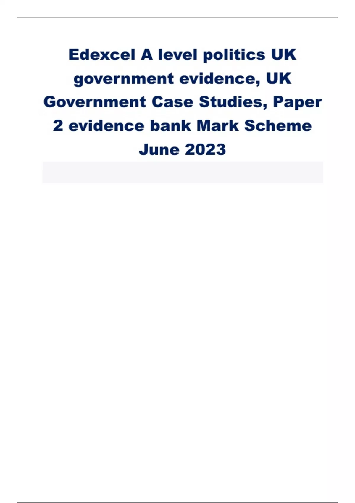 Edexcel A level politics UK government evidence, UK Government Case Studies, Paper 2 evidence bank Mark Scheme June 2023 Give an example of convention law The salisbury convention Give an example of ill thought