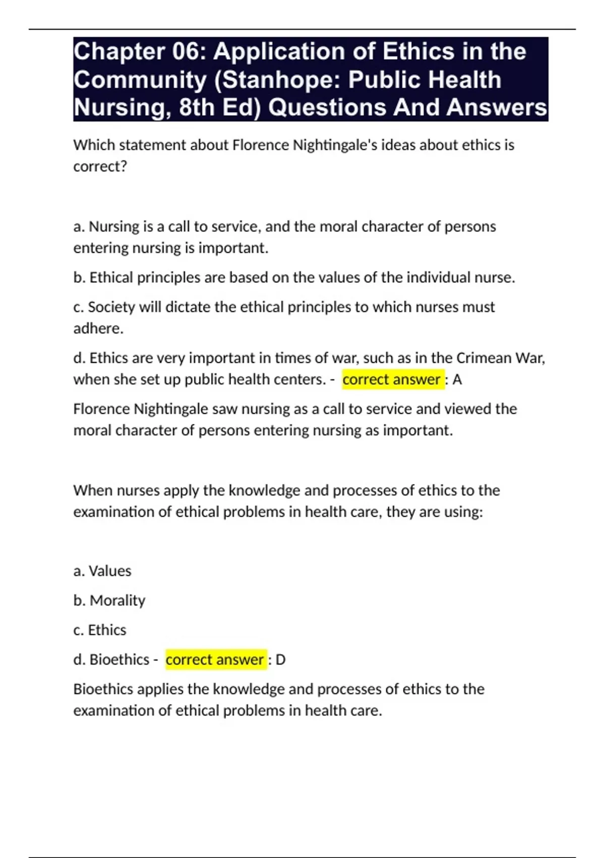 Chapter 06: Application of Ethics in the Community (Stanhope: Public Health Nursing, 8th Ed) Questions And Answers