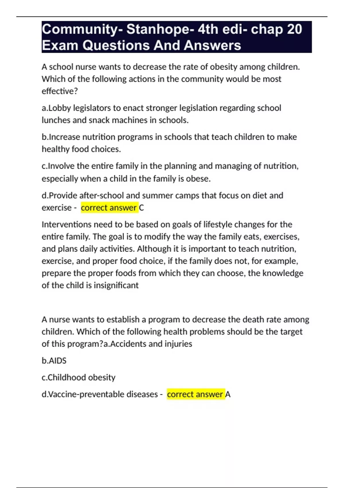 Community- Stanhope- 4th edi- chap 20 Exam Questions And Answers