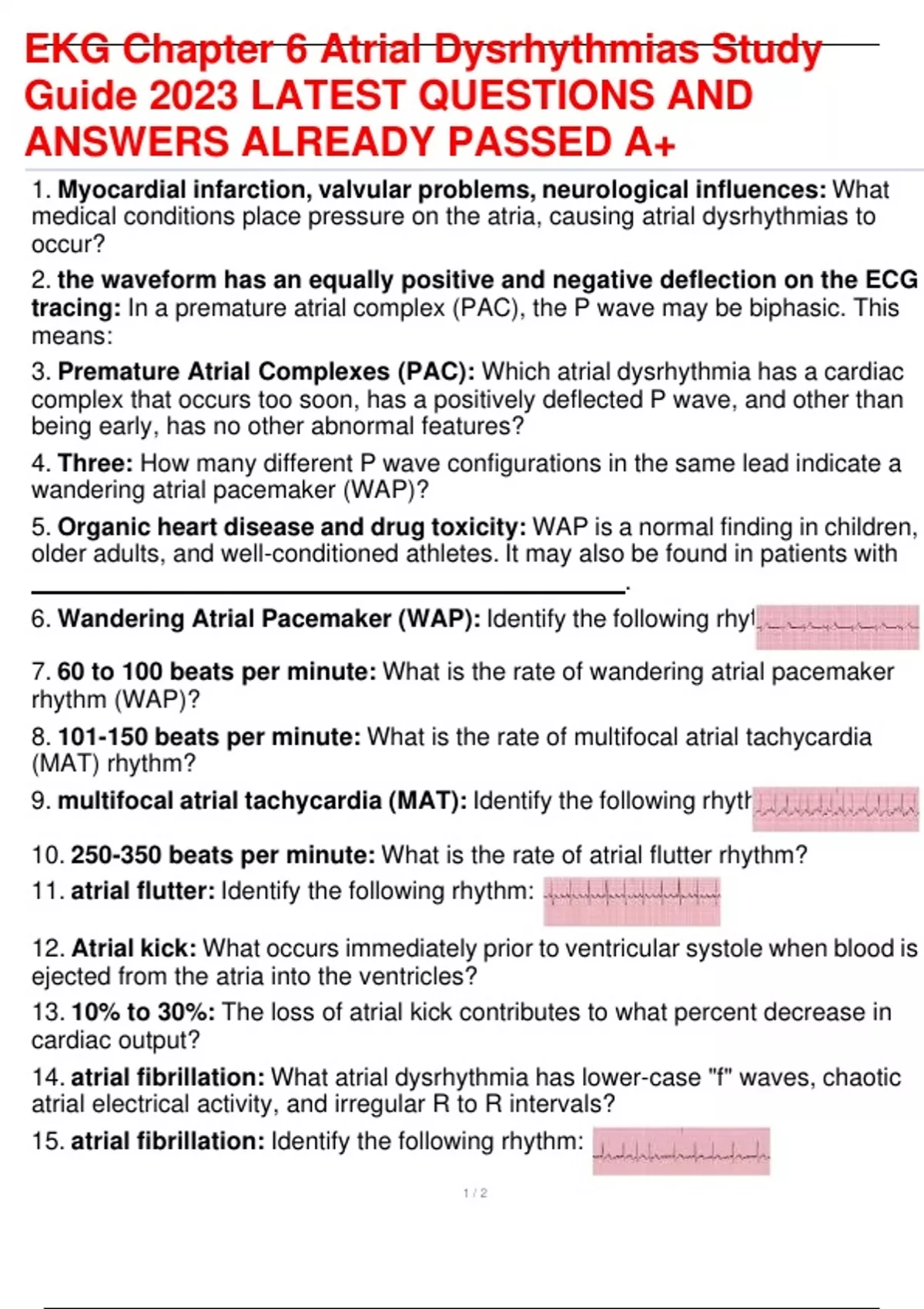 EKG Chapter 6 Atrial Dysrhythmias Study Guide 2023 LATEST QUESTIONS AND ANSWERS ALREADY PASSED A+