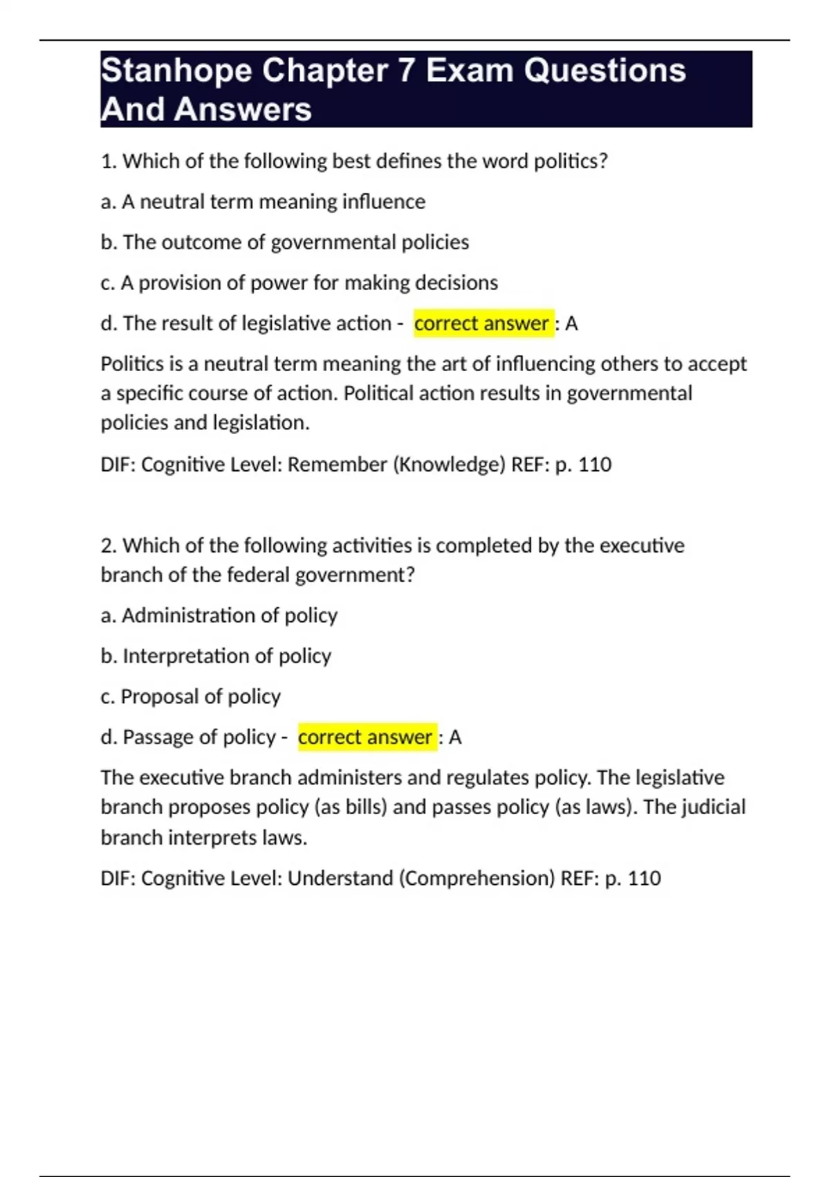 Stanhope Chapter 7 Exam Questions And Answers