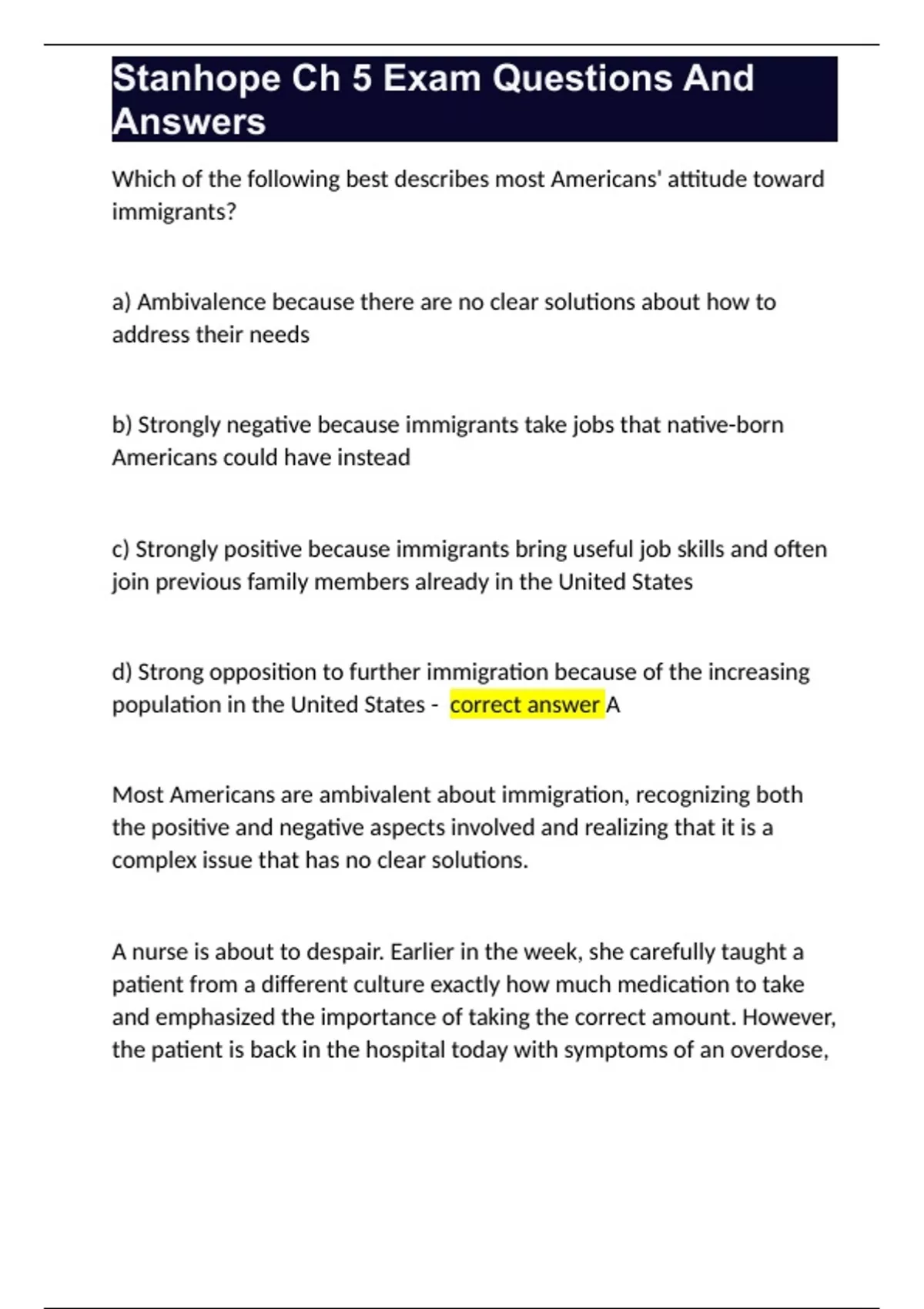 Stanhope Ch 5 Exam Questions And Answers
