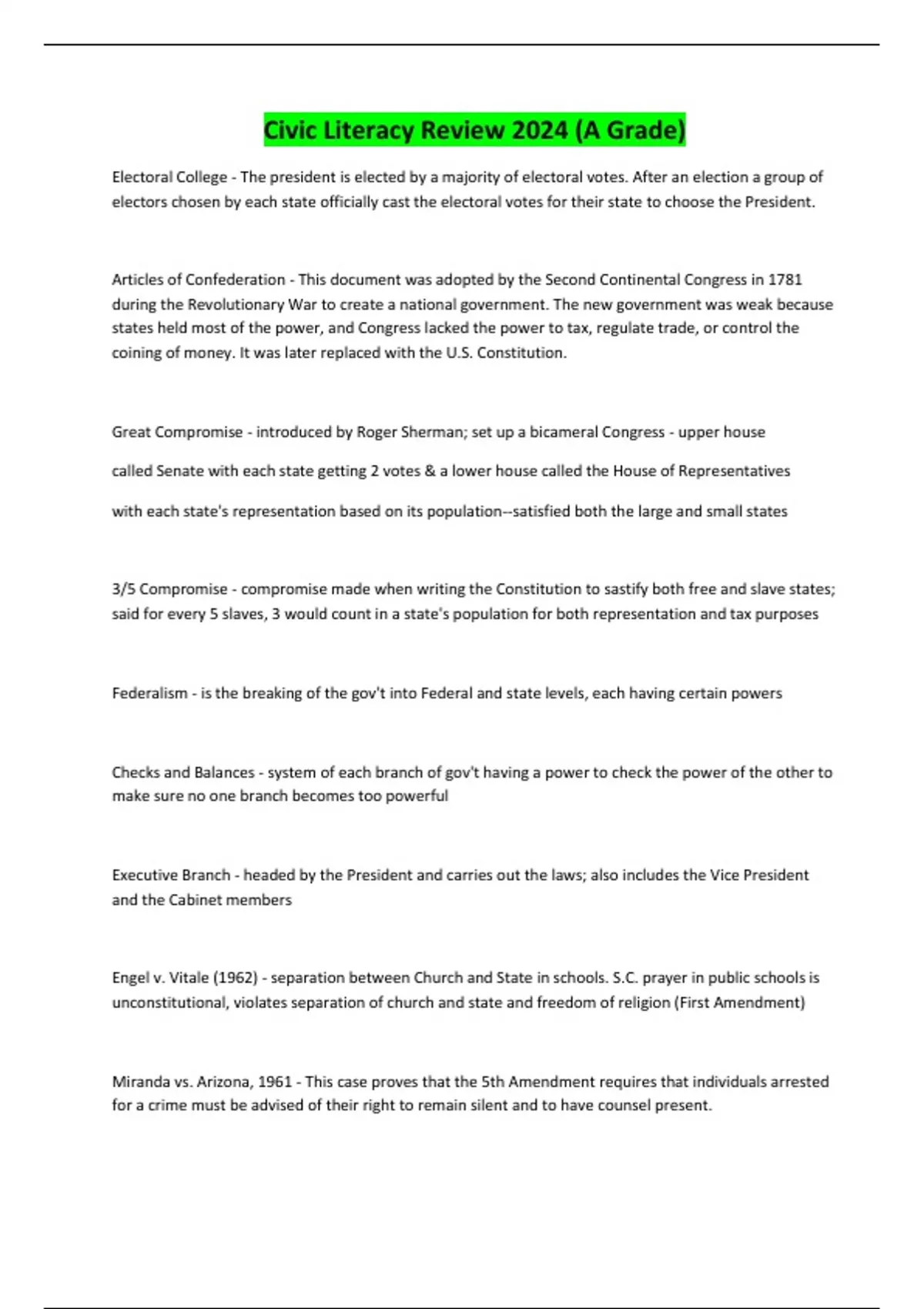 Civic Literacy Review 2024 (A Grade)