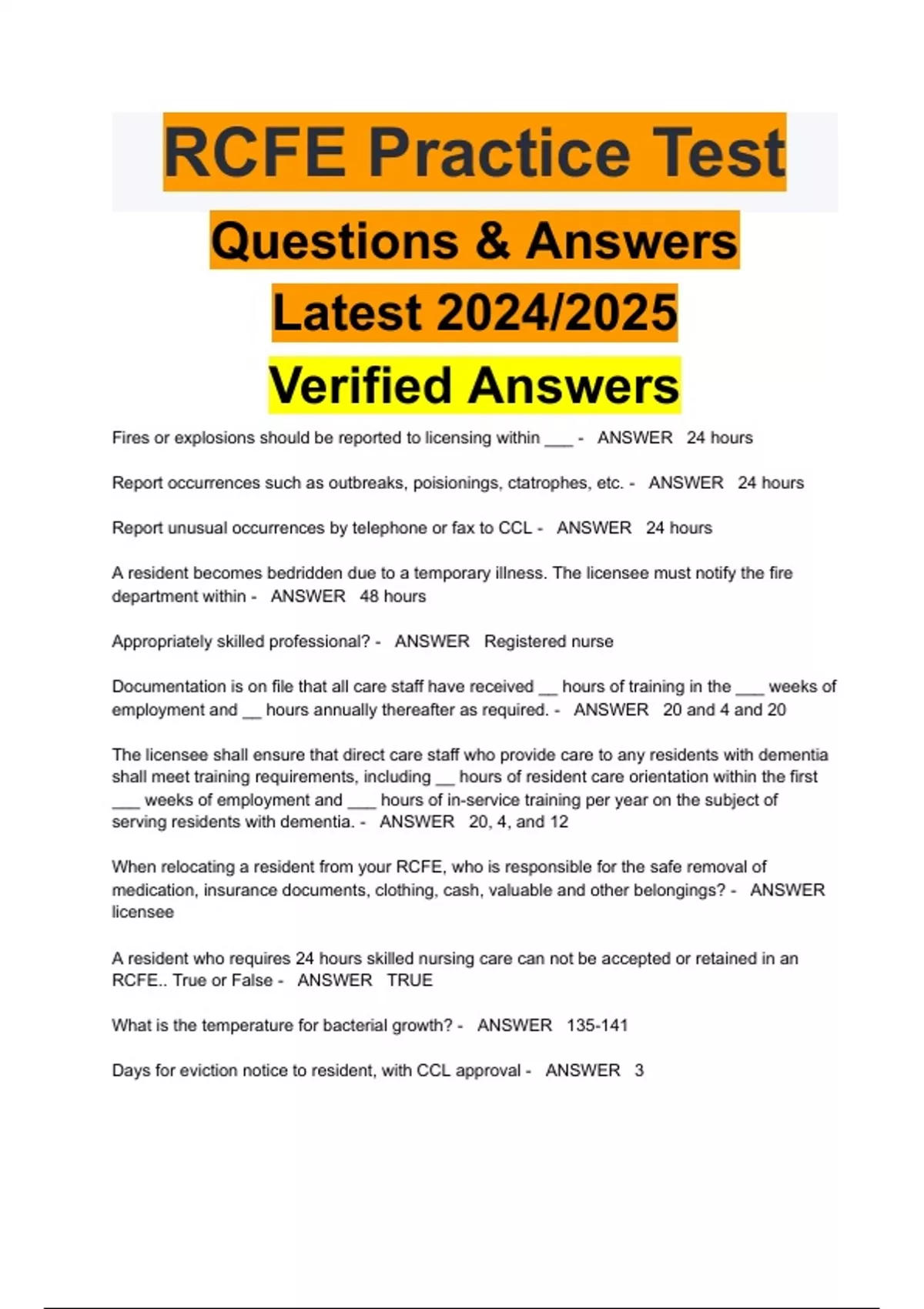 RCFE Practice Test Questions & Answers Latest 2024/2025 Verified Answers