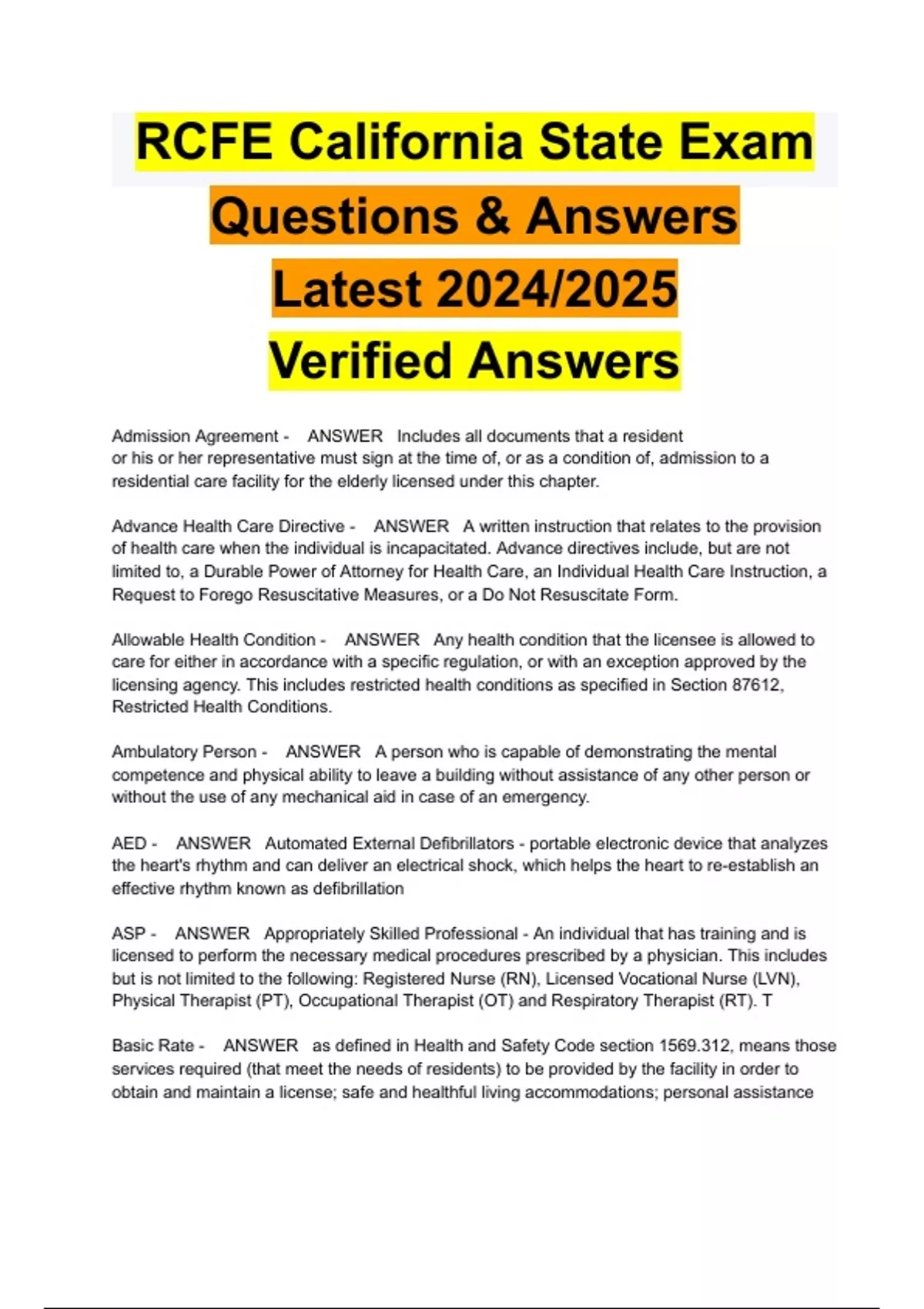 RCFE California State Exam Questions & Answers Latest 2024/2025 Verified Answers