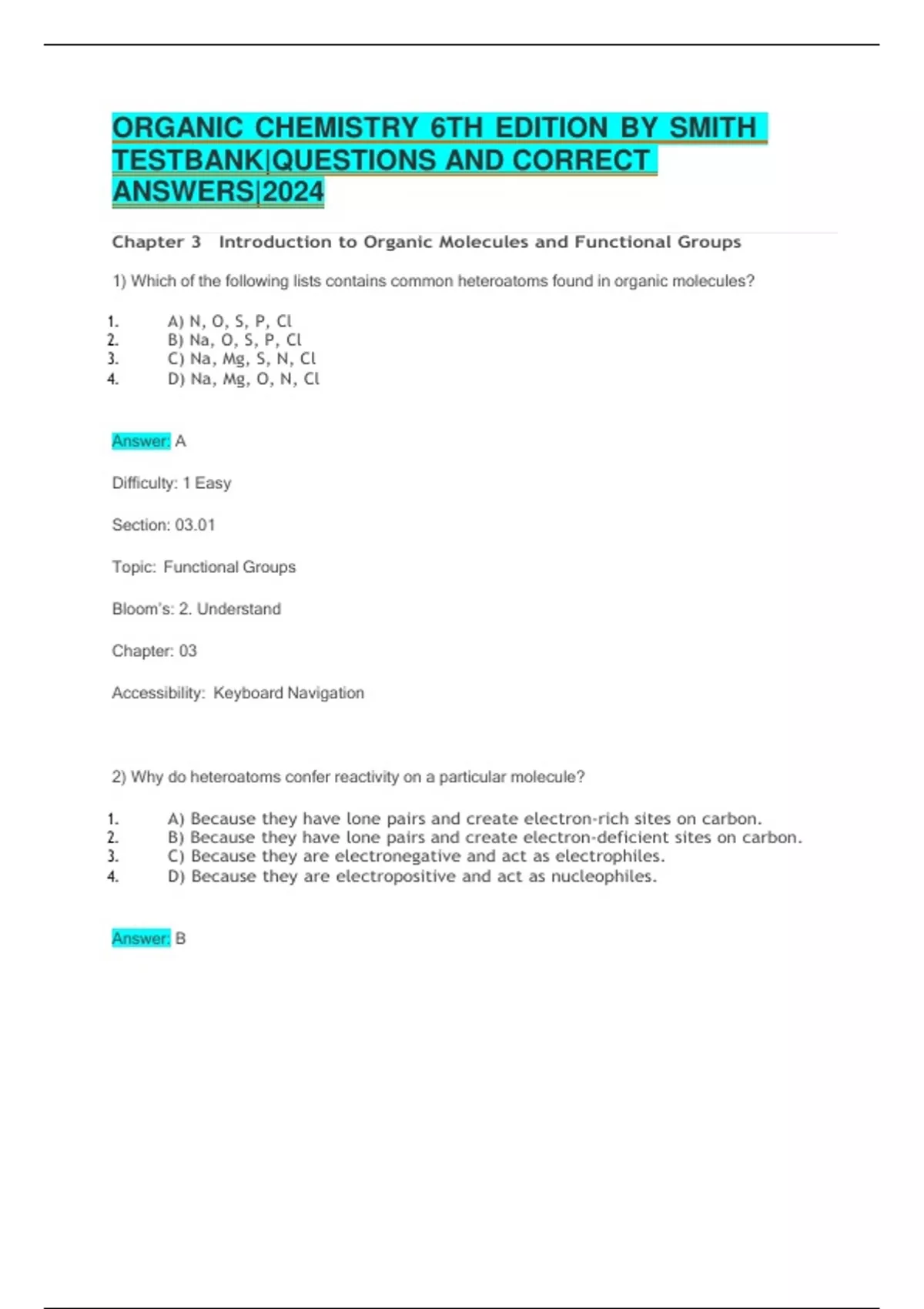 ORGANIC CHEMISTRY 6TH EDITION BY SMITH TEST BANK|QUESTIONS AND CORRECT ANSWERS|2024