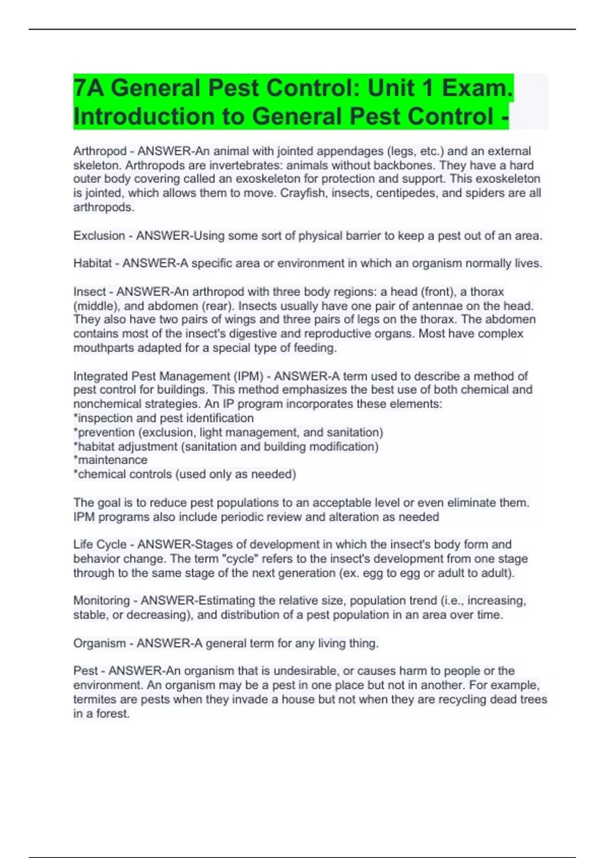 7a general pest control unit 1 exam introduction