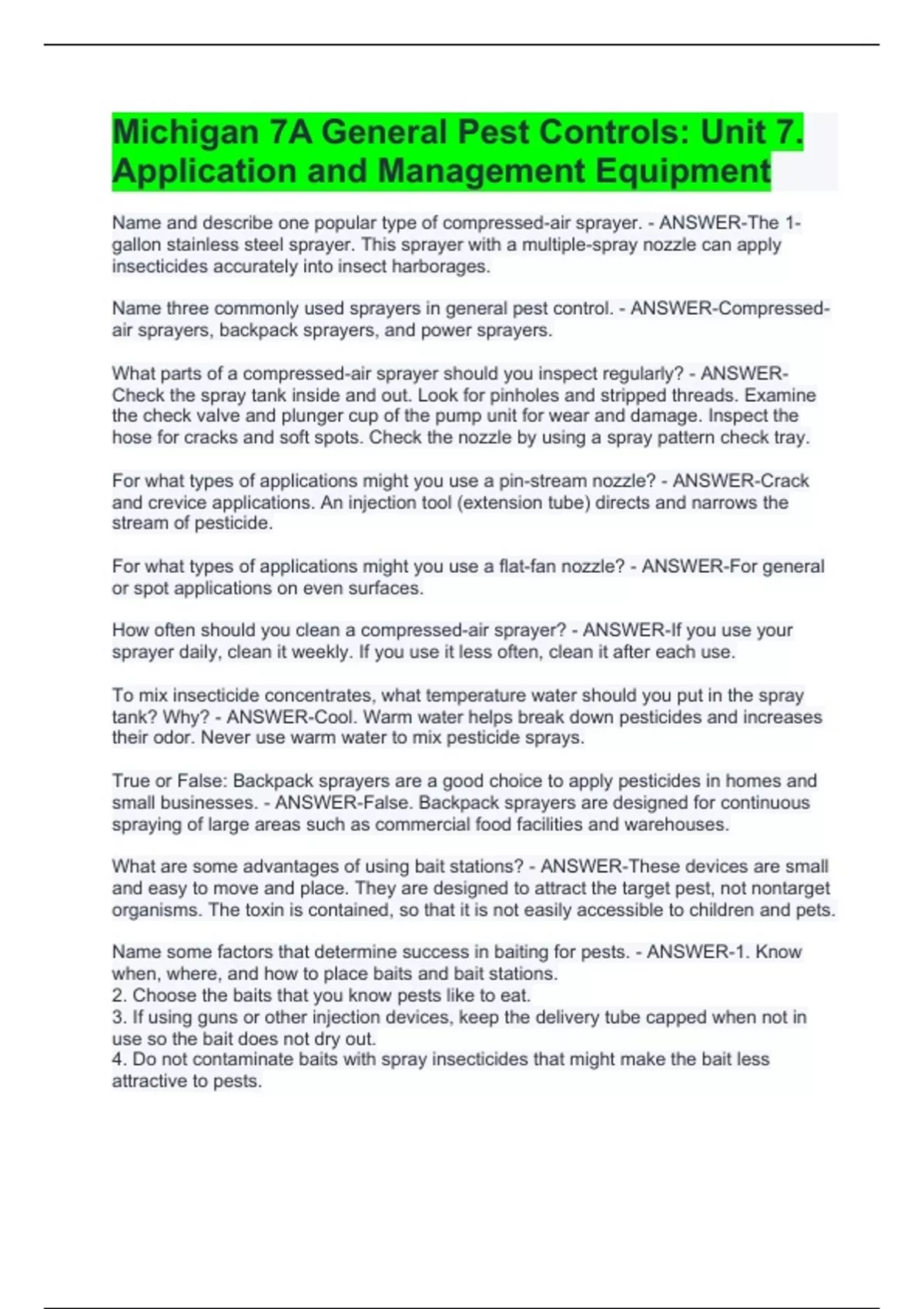 Michigan/ MDARD Pesticide Exams Package Deal-Solved