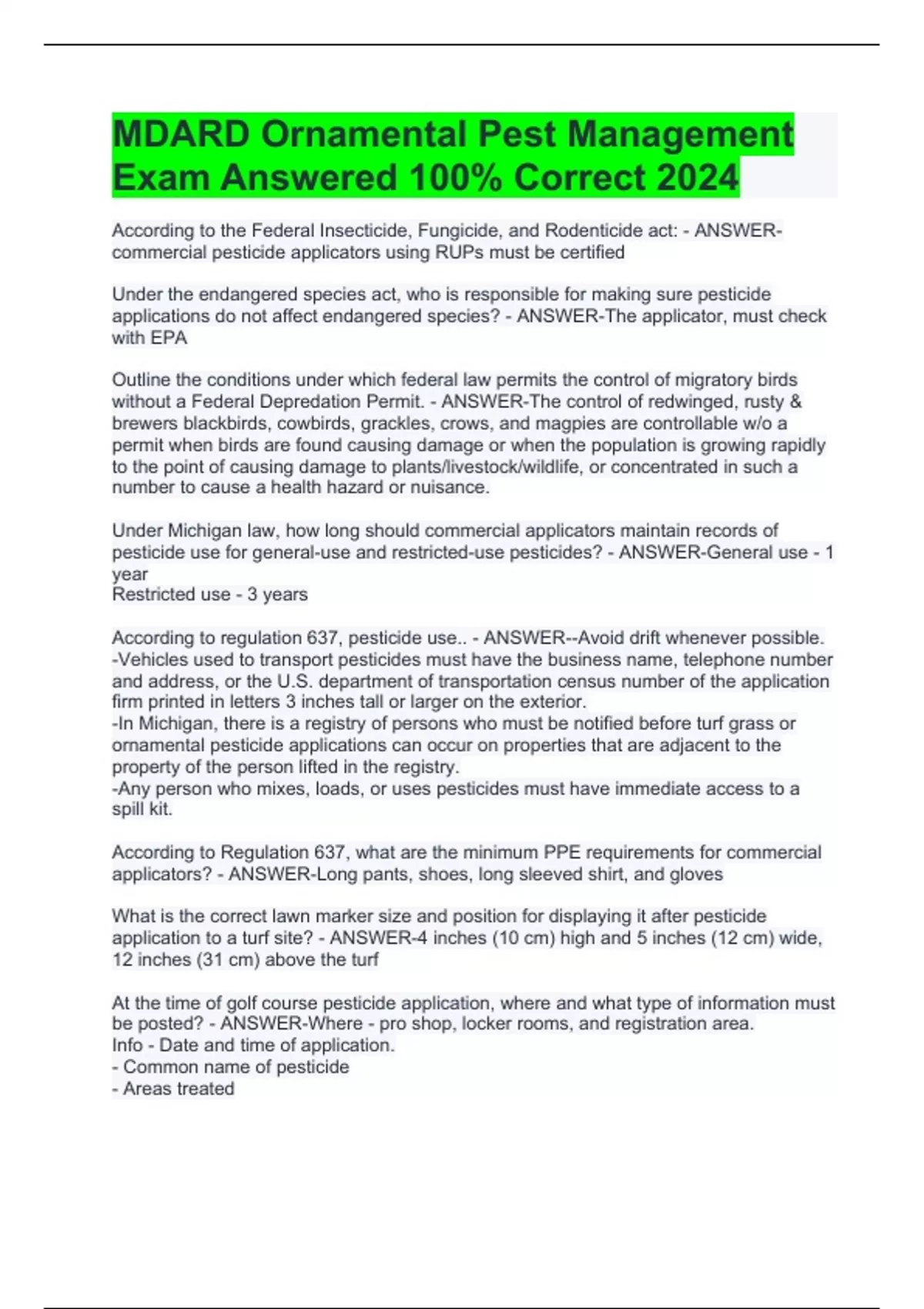 MDARD Ornamental Pest Management Exam Answered 100% Correct 2024